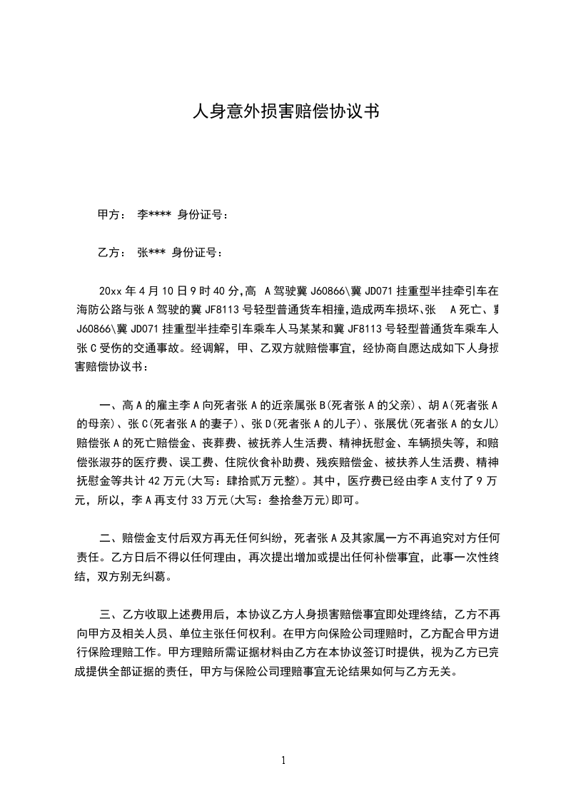 本协议为一次性终结处理协议,双方当事人应以此为断,全面切实履行合同,不得再以任何理由纠缠。甲方今后身体或精神出现任何问题均与乙方无关。