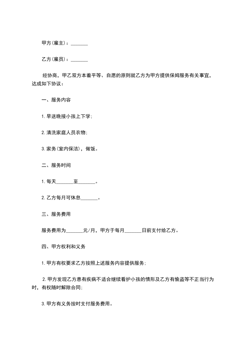3.乙方须自觉履行上述服务项目,细心照顾小孩;