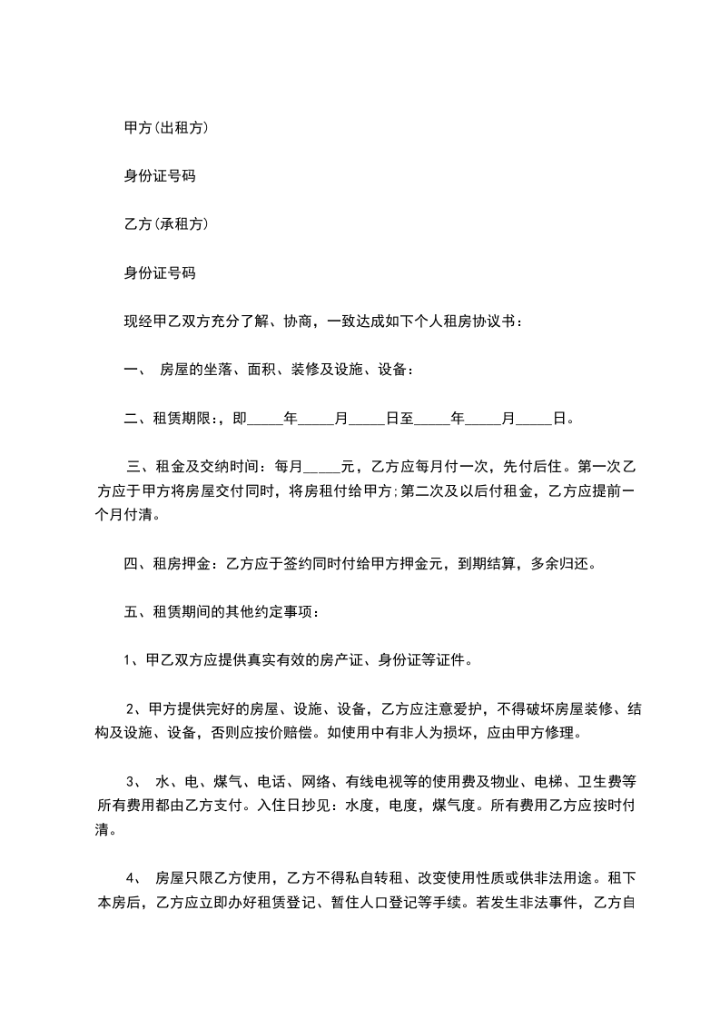乙方姓名(承租方):______________________________身份证号码:_________________________