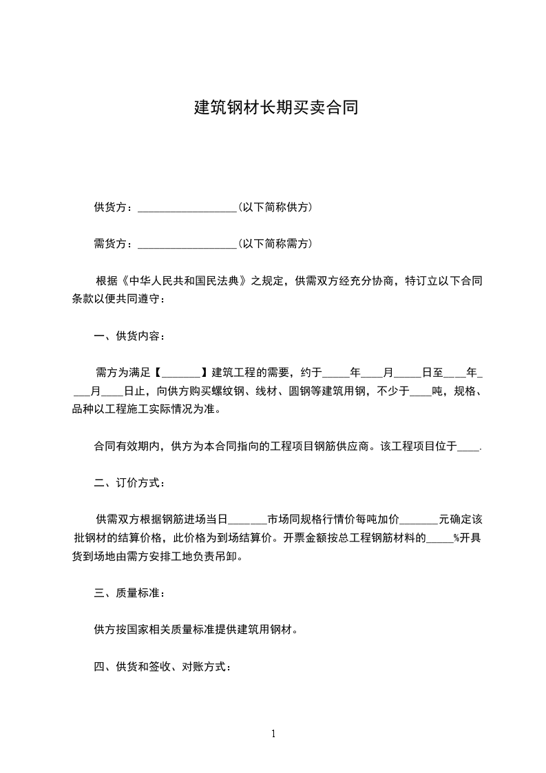 根据《中华人民共和国民法典》之规定,供需双方经充分协商,特订立以下合同条款以便共同遵守: