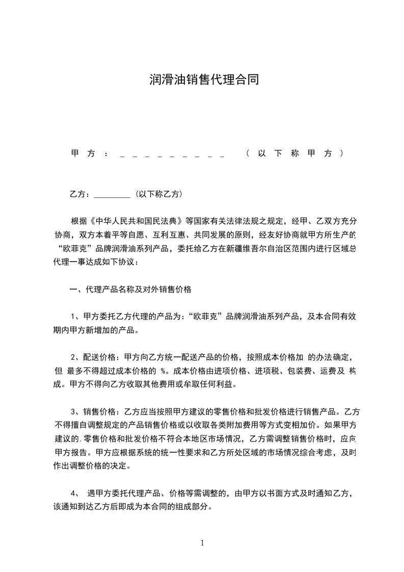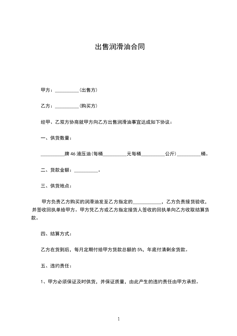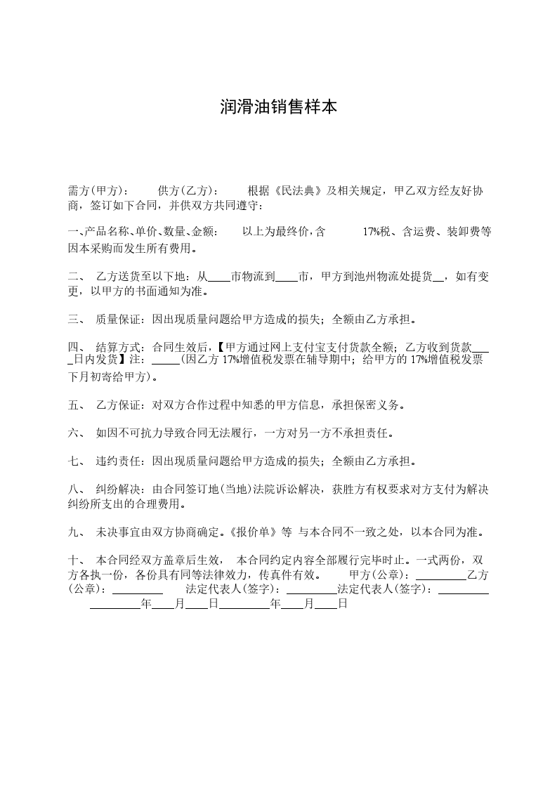 经甲、乙双方协商就甲方向乙方出售润滑油事宜达成如下协议: