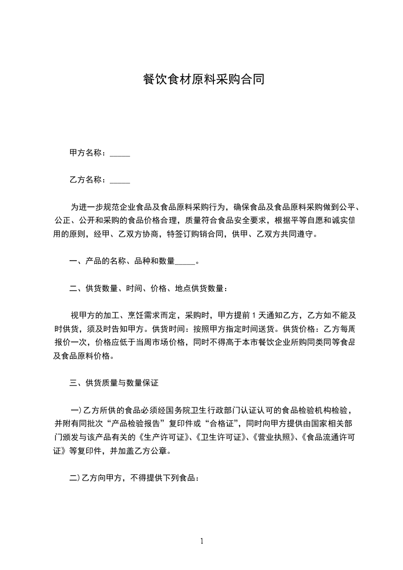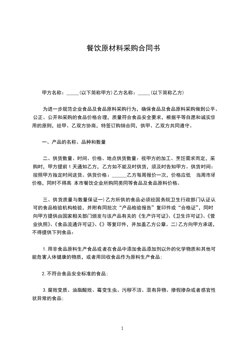 为进一步规范企业食品及食品原料采购行为,确保食品及食品原料采购做到公平、公正、公开和采购的食品价格合理,质量符合食品安全要求,根据平等自愿和诚实信用的原则,经甲、乙双方协商,特签订购销合同,供甲、乙双方共同遵守。