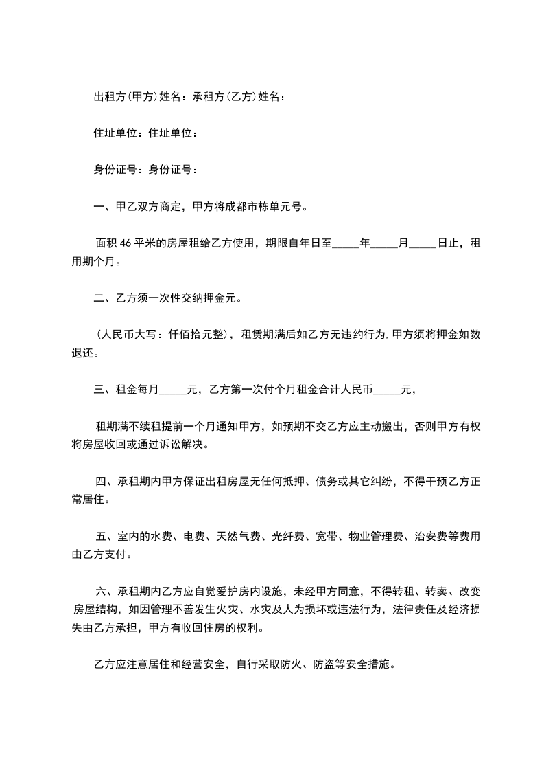出租方(甲方):_____,男/女,身份证号码___________________________