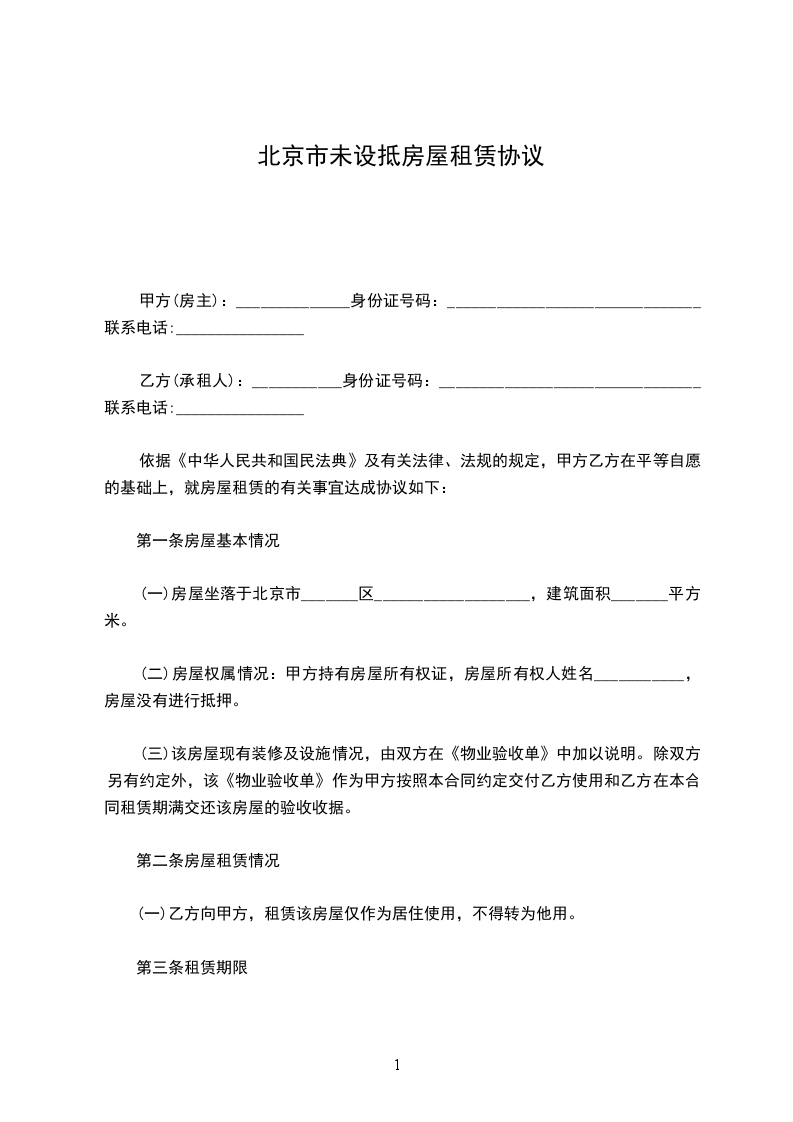 (一)房屋坐落于北京市_______区___________________,建筑面积_______平方米。
