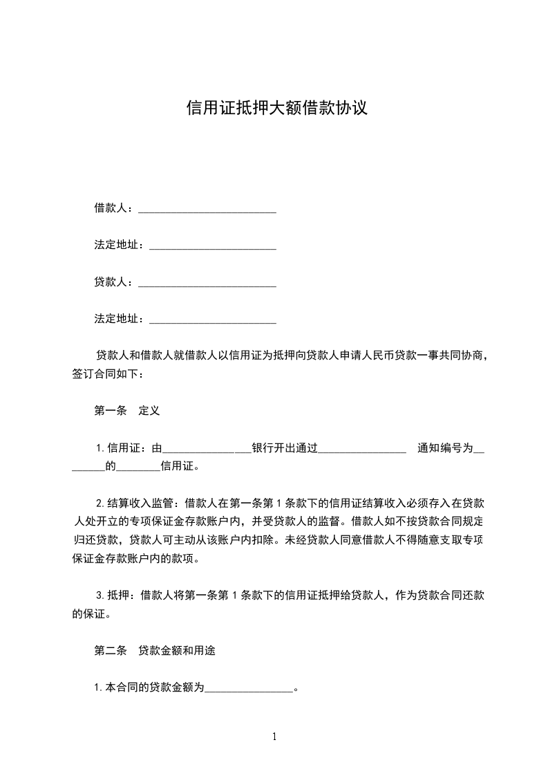 贷款人和借款人就借款人以信用证为抵押向贷款人申请人民币贷款一事共同协商,签订合同如下: