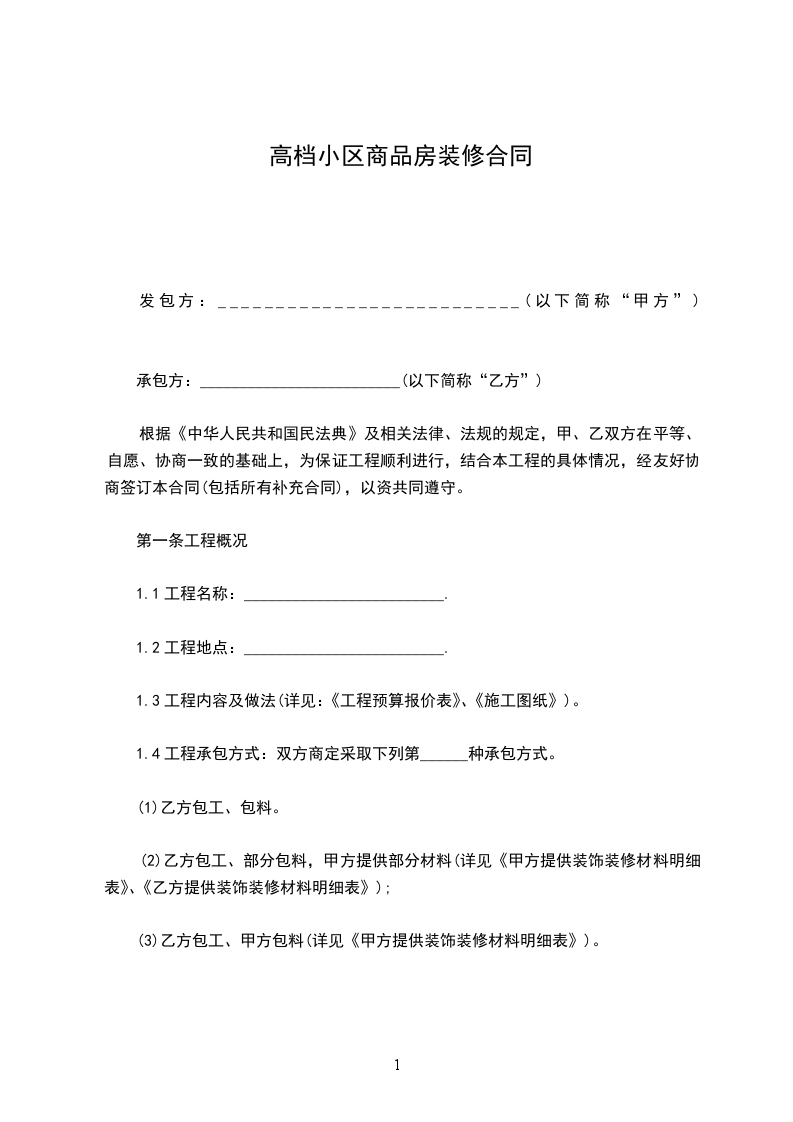 1.4工程承包方式:双方商定采取下列第______种承包方式。