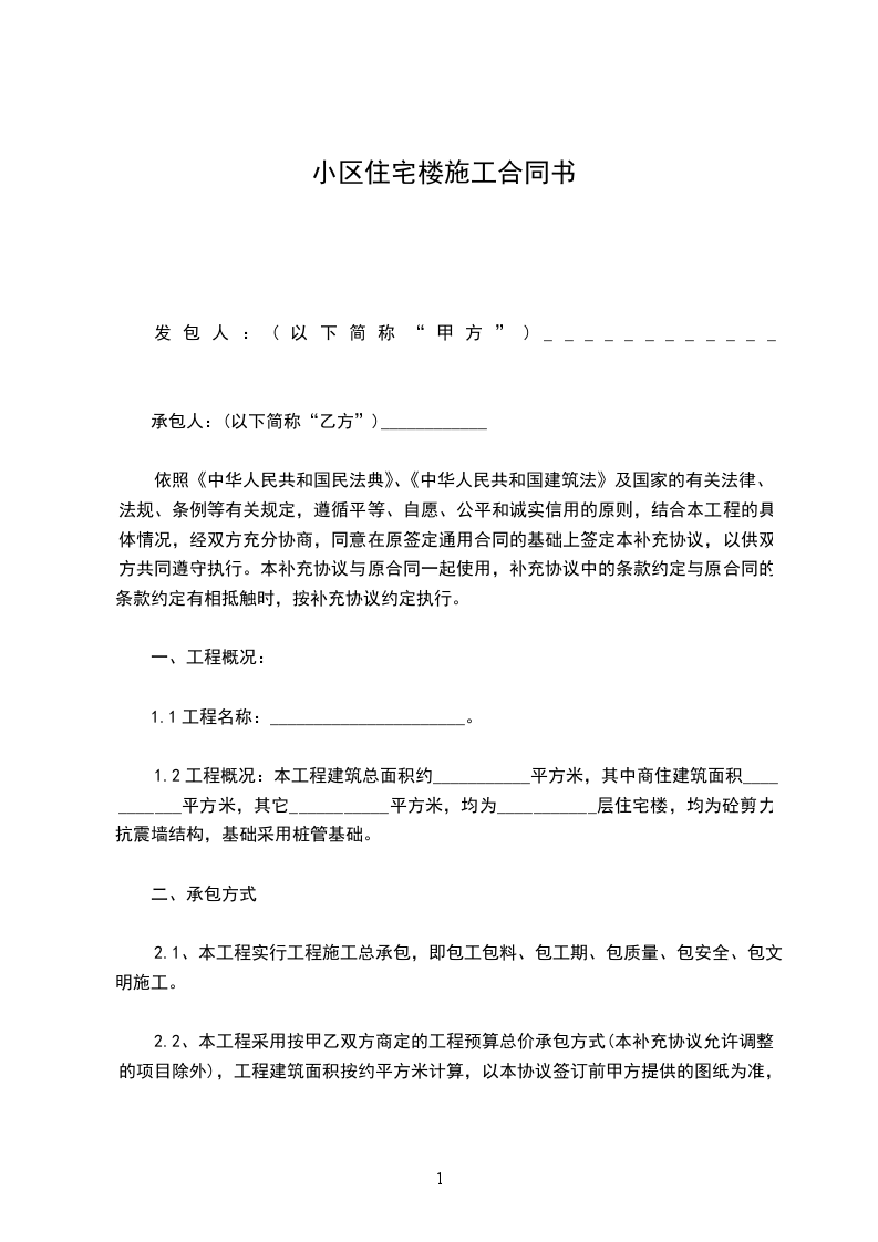 1.2工程概况:本工程建筑总面积约___________平方米,其中商住建筑面积___________平方米,其它___________平方米,均为___________层住宅楼,均为砼剪力抗震墙结构,基础采用桩管基础。