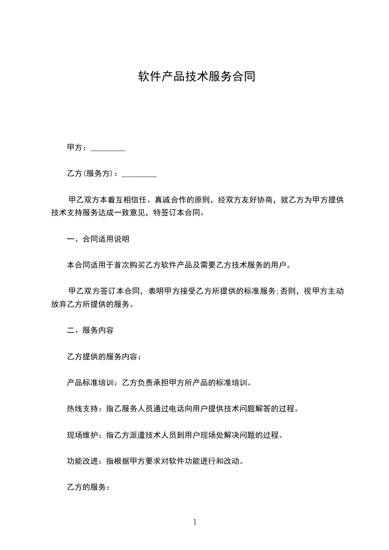 本合同适用于首次购买乙方软件产品及需要乙方技术服务的用户。