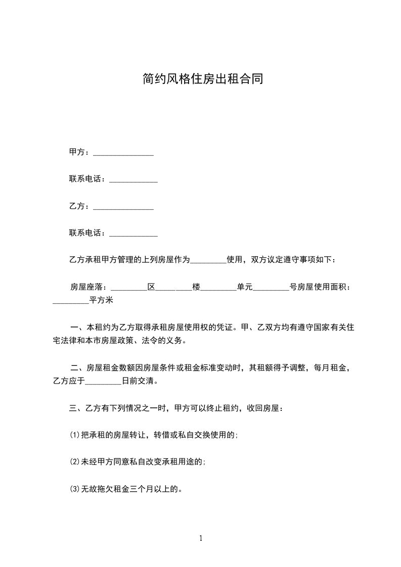 三、乙方有下列情况之一时,甲方可以终止租约,收回房屋: