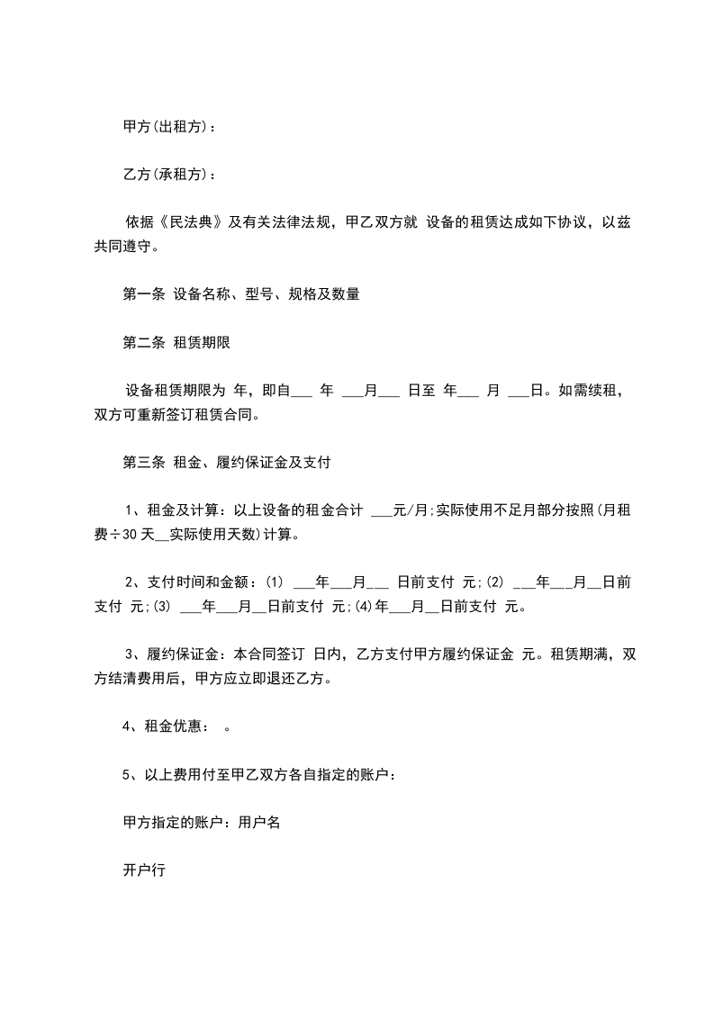 甲、乙双方根据《中华人民共和国民法典》的有关规定,按照平等互利的原则,经过双方协商,就乙方向甲方承租设备特签订本合同。