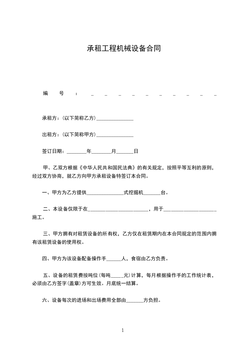 一、甲方为乙方提供_______________式挖掘机_______台。