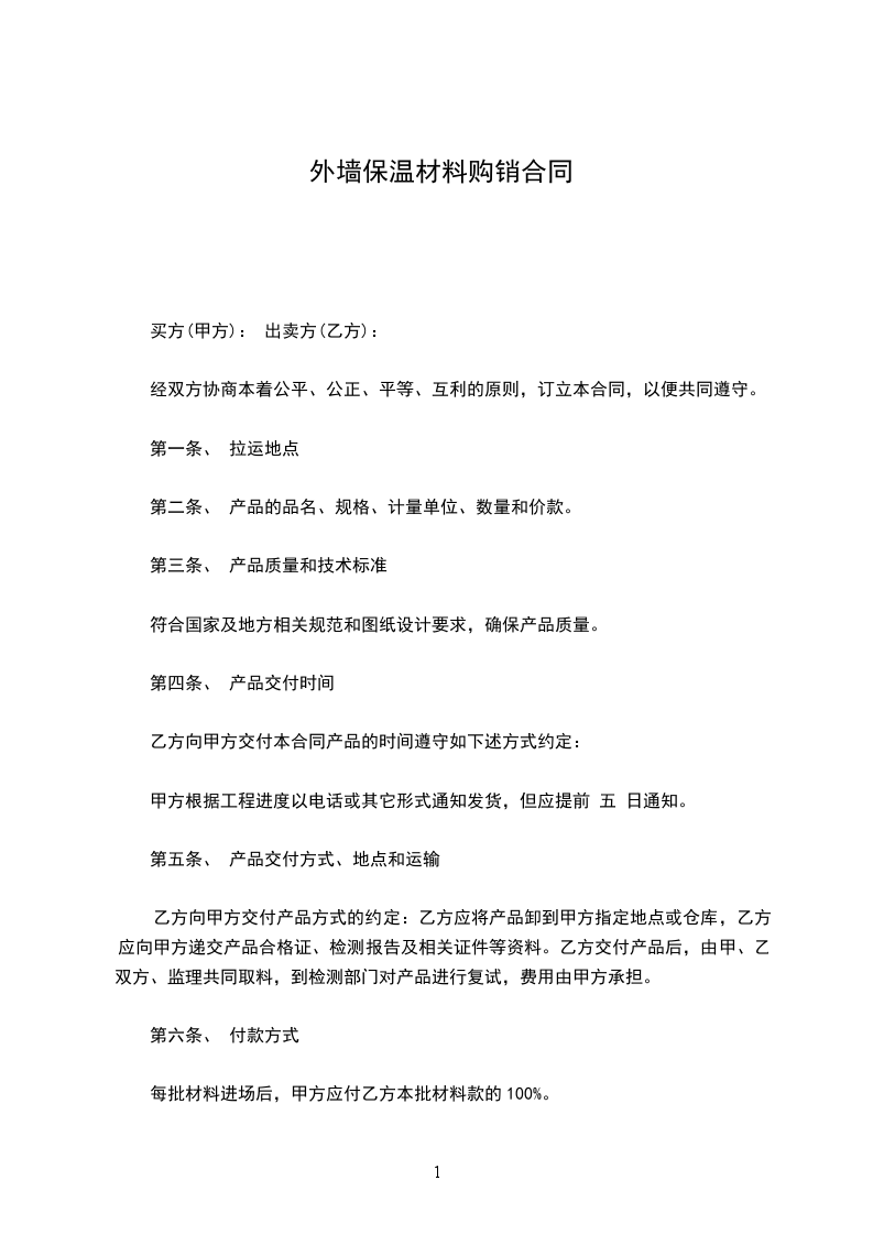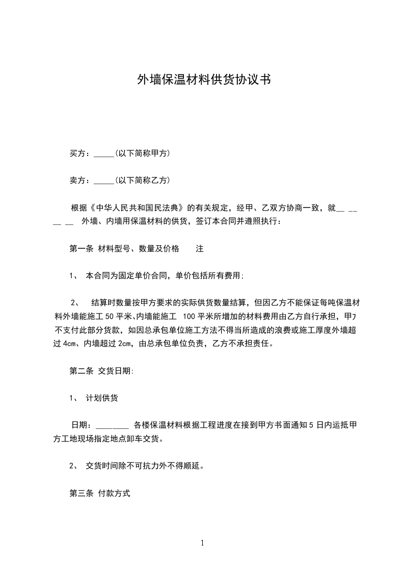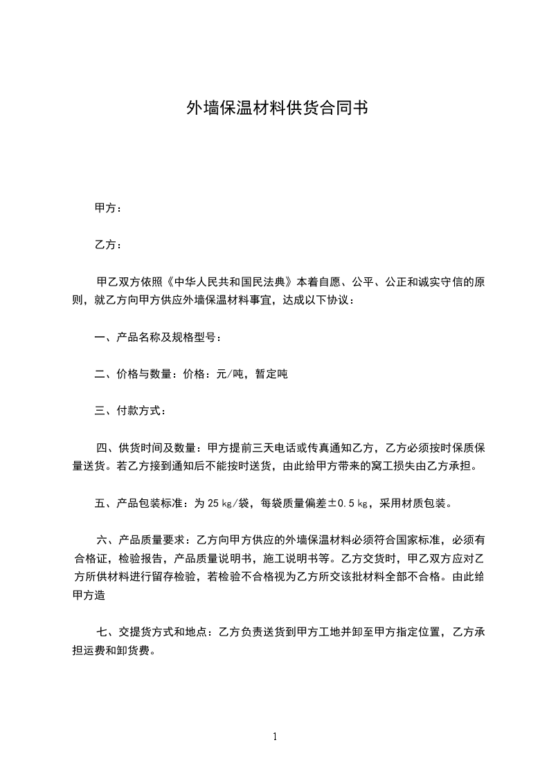 甲乙双方依照《中华人民共和国民法典》本着自愿、公平、公正和诚实守信的原则,就乙方向甲方供应外墙保温材料事宜,达成以下协议: