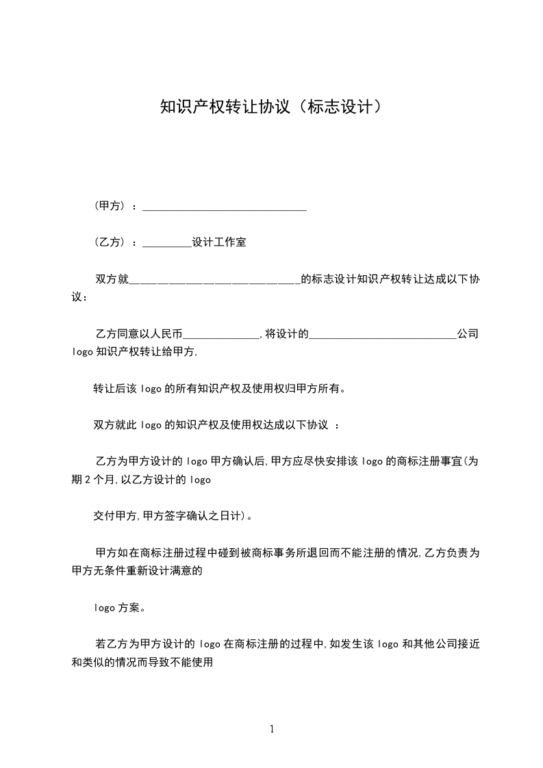 双方就______________________________的标志设计知识产权转让达成以下协议: