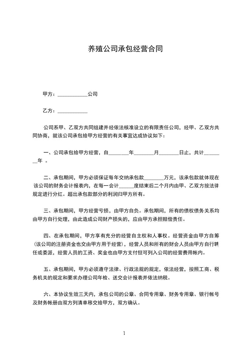 一、公司承包给甲方经营,自________年________月________日止,共计________年 。