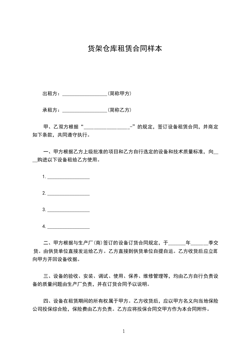 1.按照能满足第二条、第三条的质量要求的情况下货架总价为人民币(大写) (¥ 元)(包括所有的运输、装卸及安装费)。