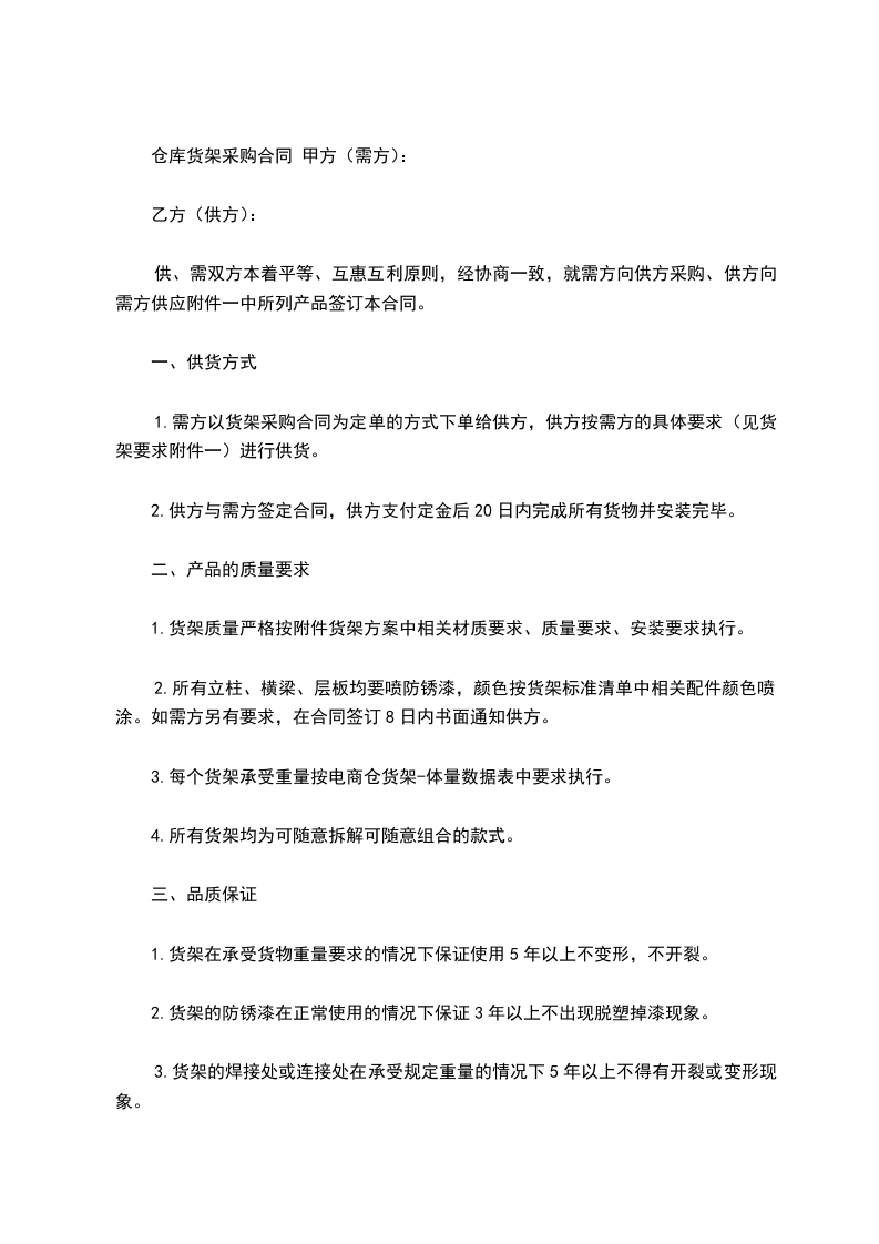 1.需方以货架采购合同为定单的方式下单给供方,供方按需方的具体要求(见货架要求附件一)进行供货。
