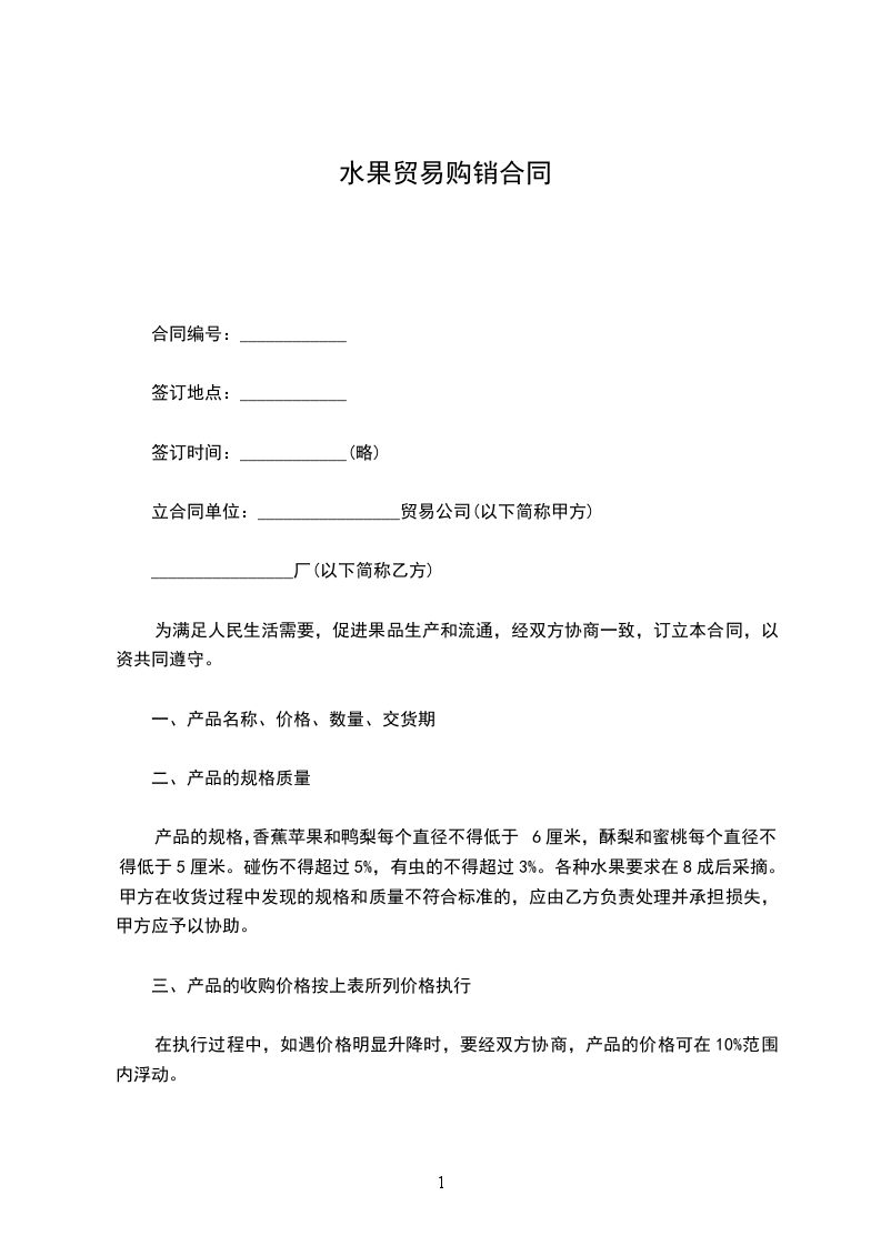 为满足人民生活需要,促进果品生产和流通,经双方协商一致,订立本合同,以资共同遵守。