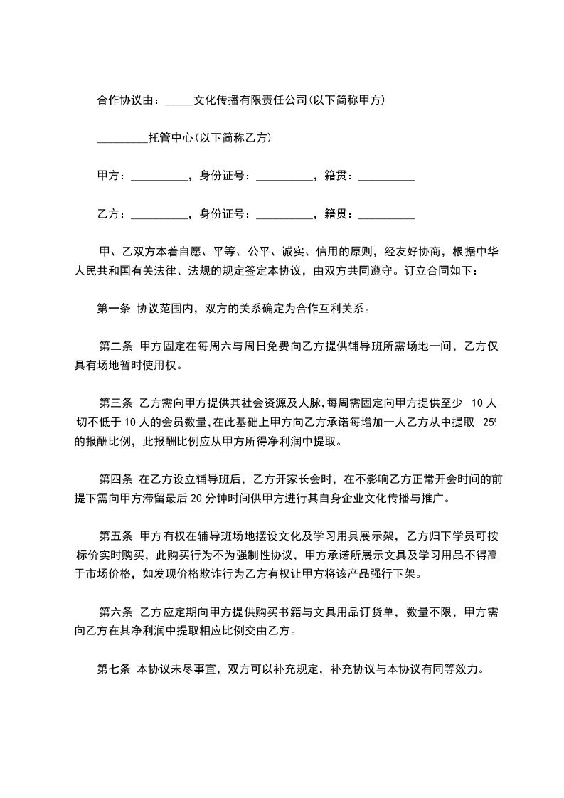 第二十条合作期间合伙人不得任何某一人单方撤出或抽回投资资金,如有很特殊情况一方必须撤出并抽回资金也要经另外两人同意后方可撤出。撤出后资金按照前期投资资金全额的百分之伍拾抽回。(例:前期投资资金人民币叁拾万元整撤出后抽回人民币壹拾五万元整。这部分资金将有剩下的另外两位投资人共同平均支付,同时剩余两位投资人将继续履行合作协议的一切约定。)