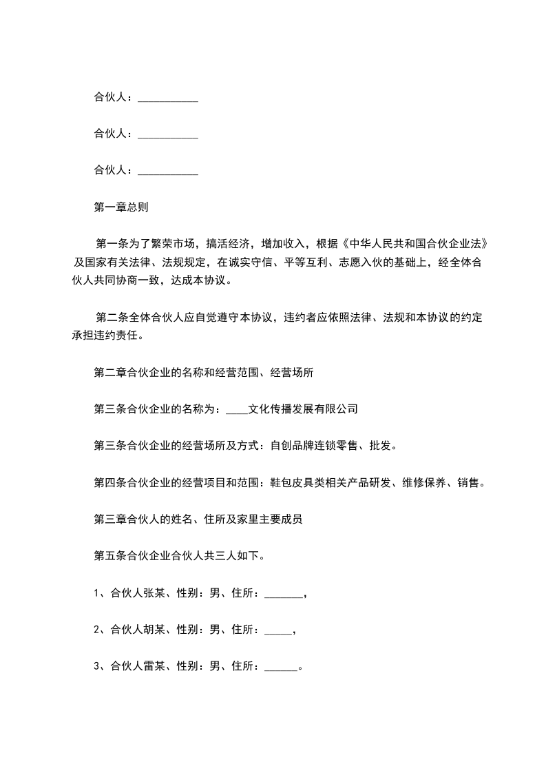 第三条合伙企业的名称为:____文化传播发展有限公司