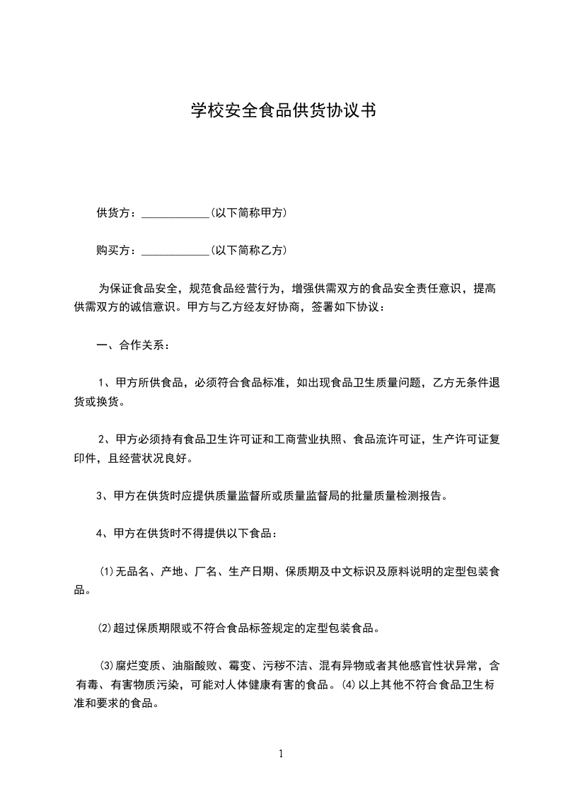 5、乙方向甲方供应的食品(原料、调料)价格按照批发价或优惠价确定。