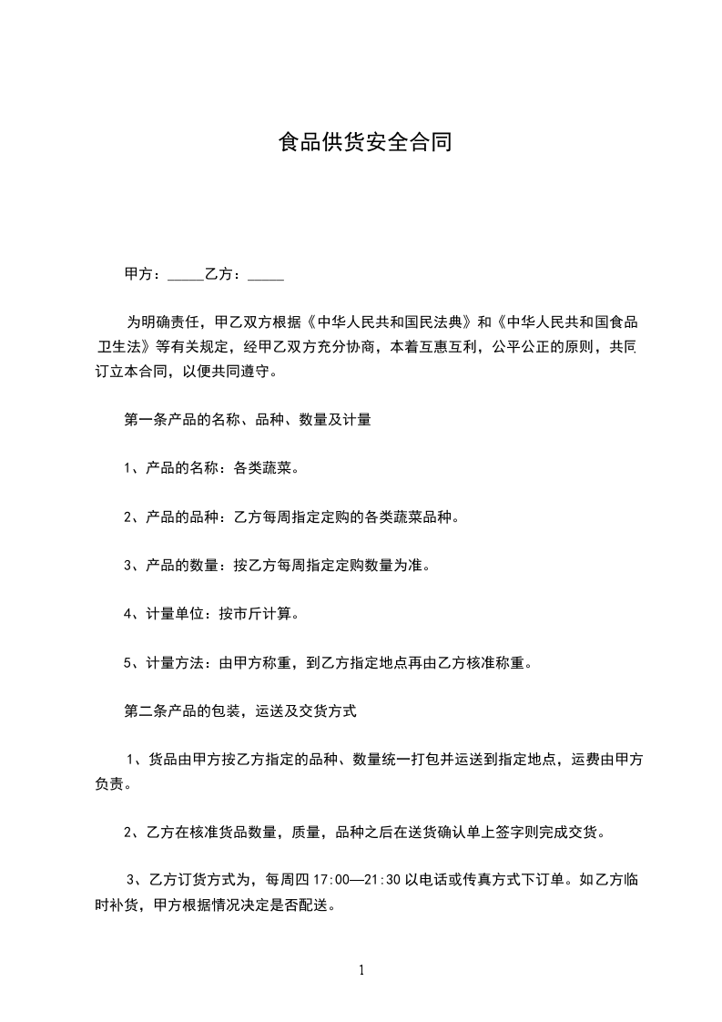 本学期由__________为甲方食堂供应__________。为了保护供需双方的合法权益,并让甲方用上安全卫生的放心食品,确保甲方全体师生员工的身心健康,经甲、乙双方共同协商后,特签定供货合同如下: