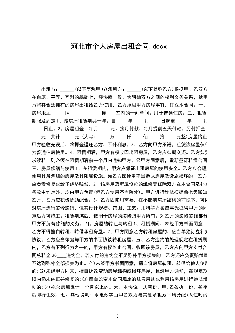 1、甲方将其合法拥有的座落在本市______________区______________路______________弄________号________室______________ 出租给乙方使用。