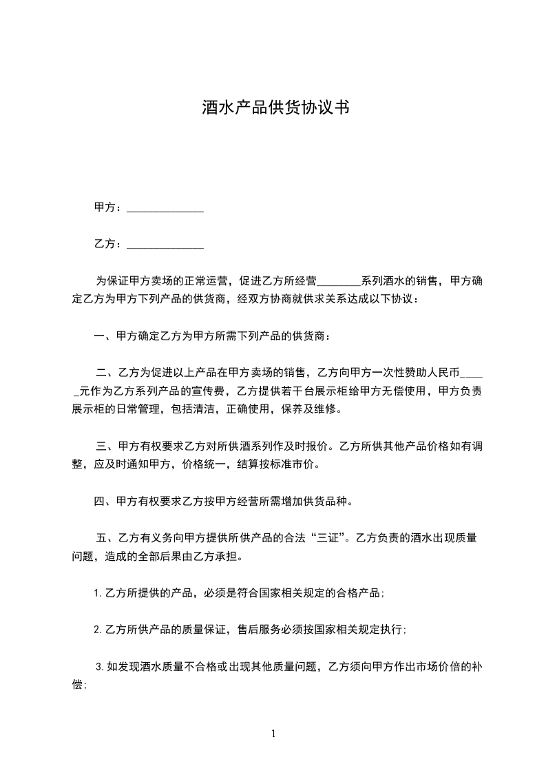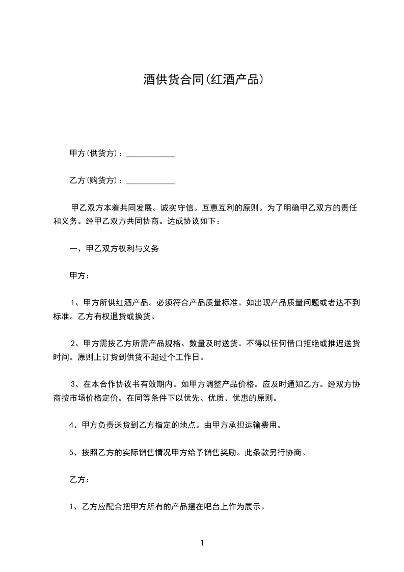 1、甲方所供红酒产品。必须符合产品质量标准。如出现产品质量问题或者达不到标准。乙方有权退货或换货。