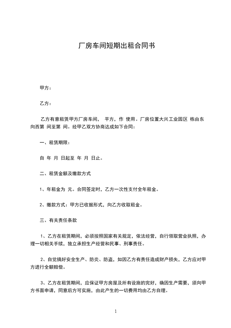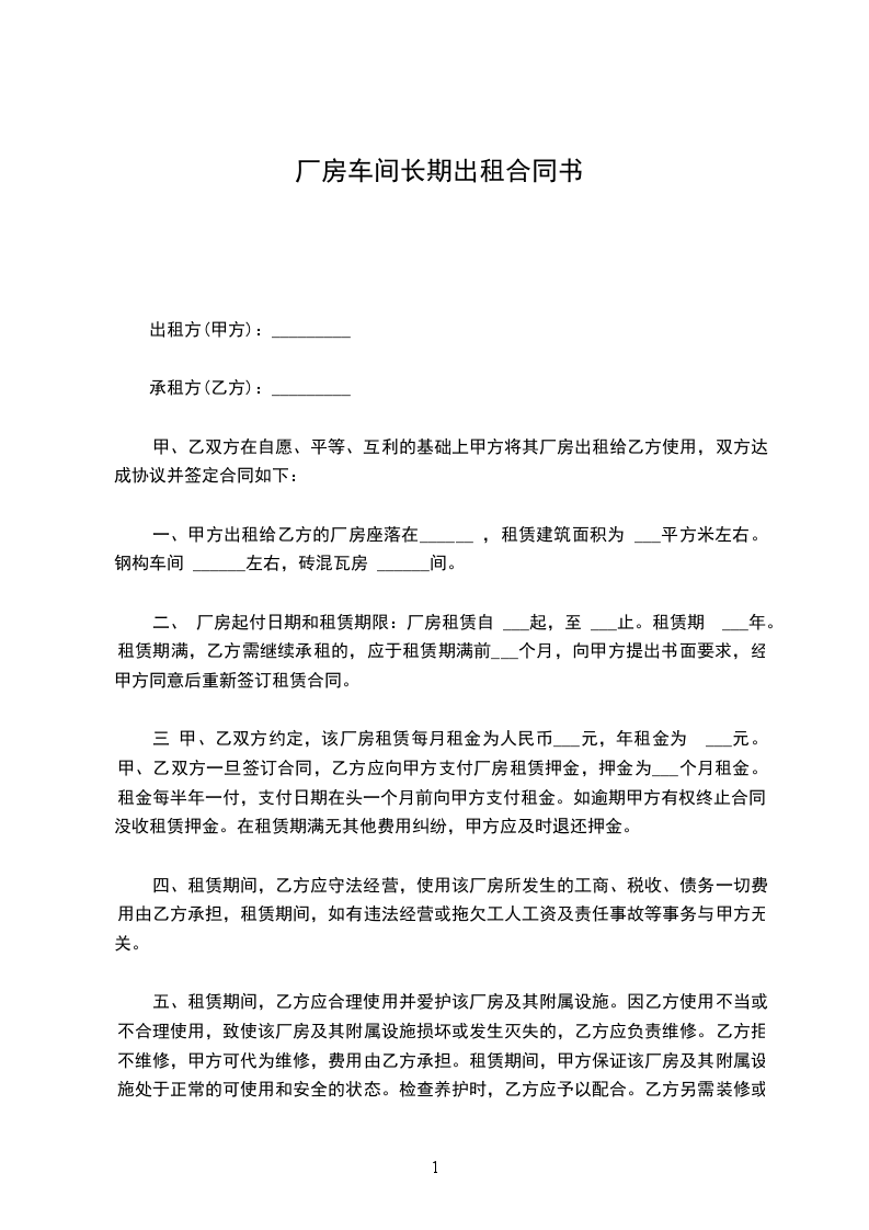 一、甲方出租给乙方的厂房座落在______ ,租赁建筑面积为 ___平方米左右。钢构车间 ______左右,砖混瓦房 ______间。