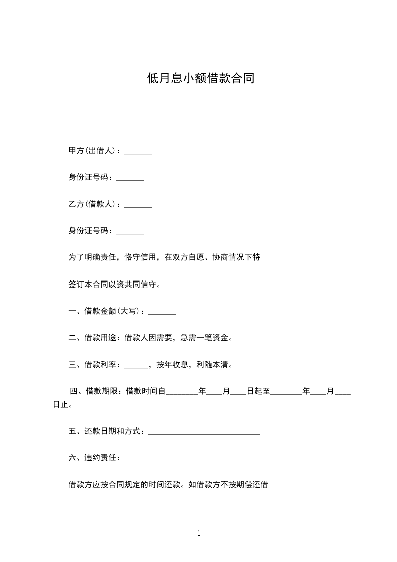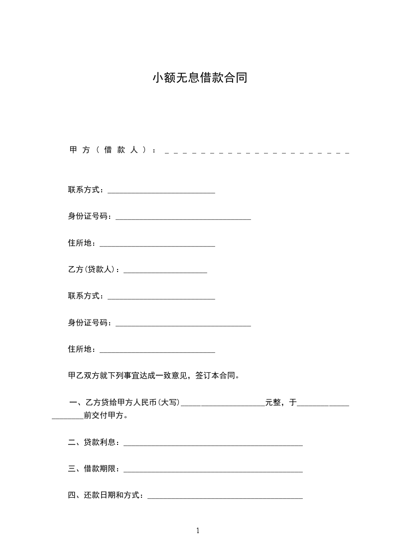 一、乙方贷给甲方人民币(大写)_____________________元整,于_____________________前交付甲方。