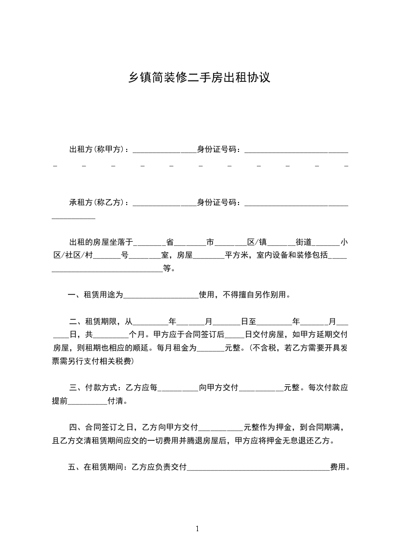 出租方(称甲方):________________身份证号码:_____________________________________