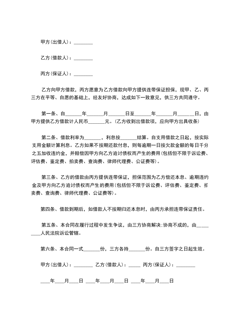 甲方(出借人):________ 乙方(借款人):_____ 丙方(保证人):________