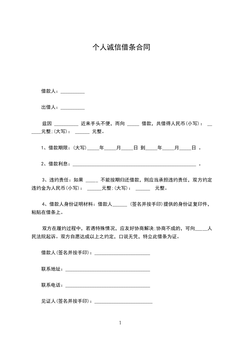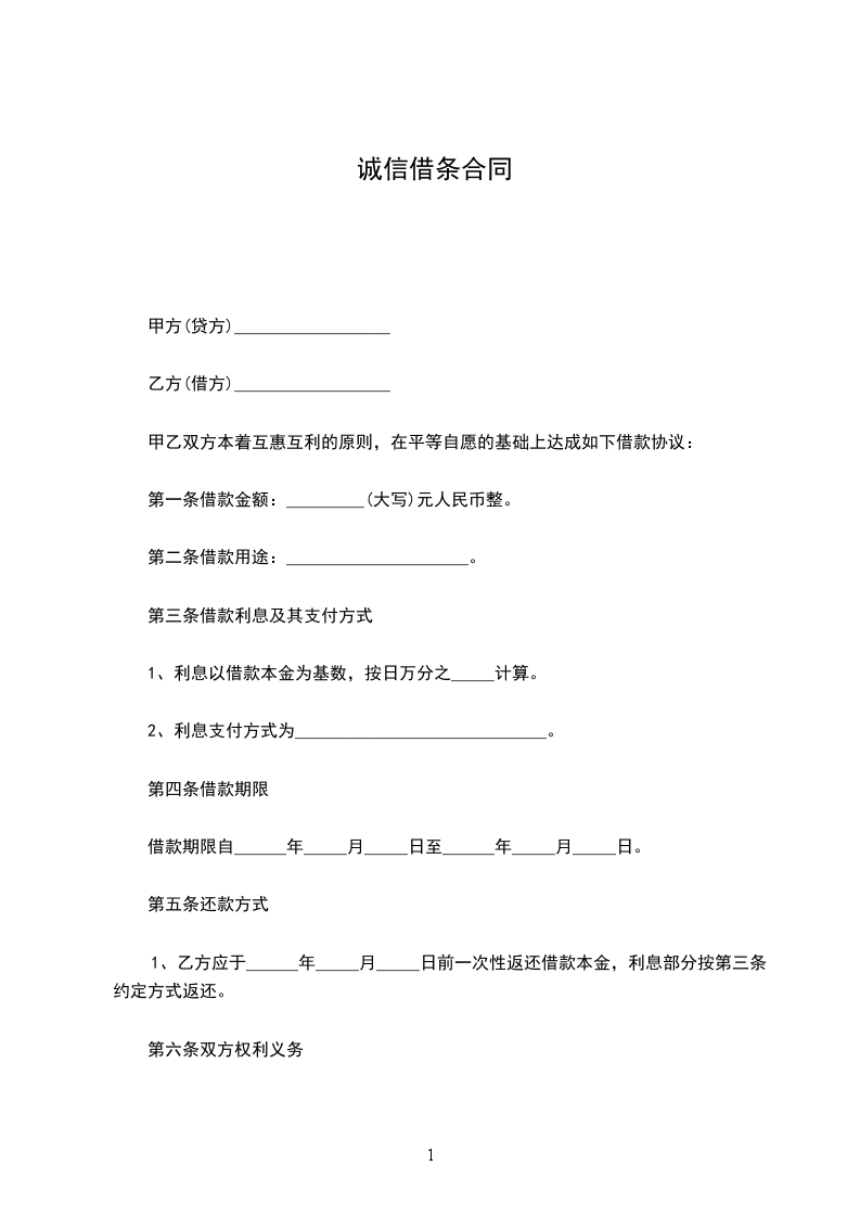 第一条、自_______年_______月_______日至_______年_______月_______日,由甲方提供乙方借款计人民币_______元。(乙方收到出借款项,应向甲方出具收条)