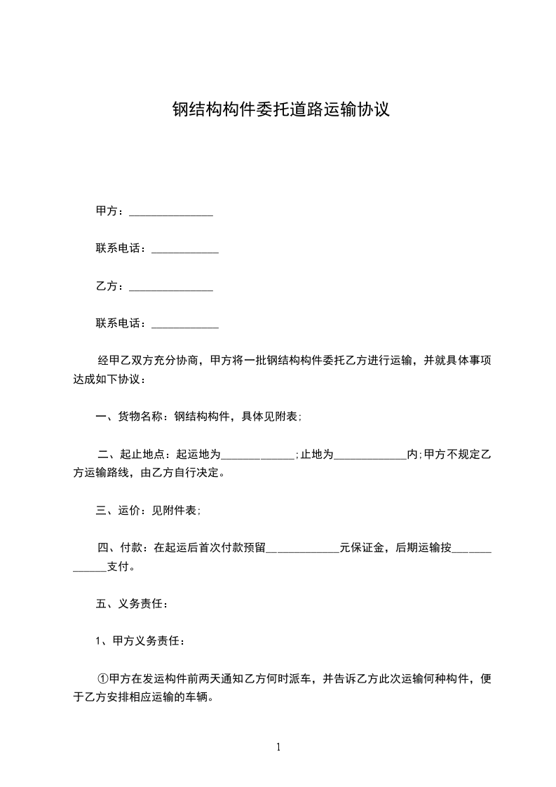 经甲乙双方充分协商,甲方将一批钢结构构件委托乙方进行运输,并就具体事项达成如下协议:
