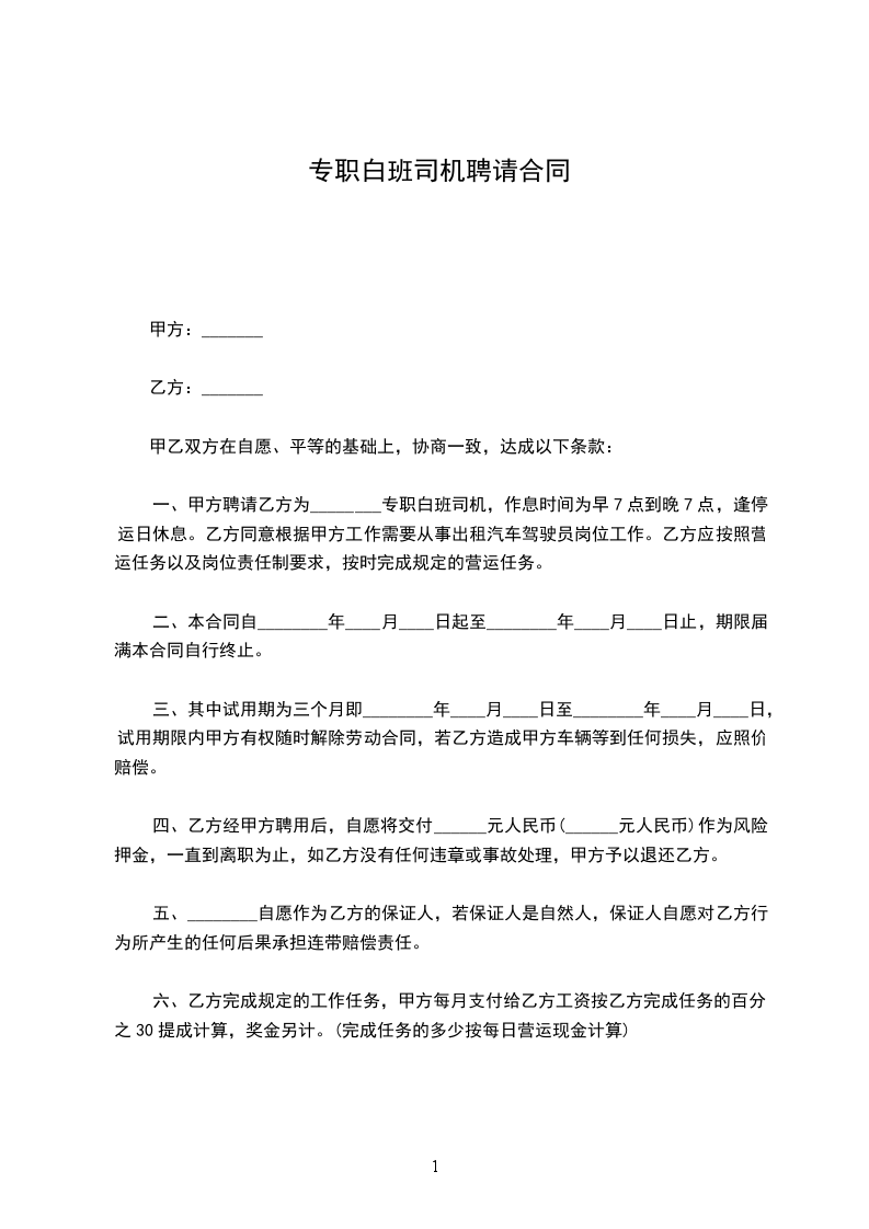 7、乙方应每天6点30分至22点30保持通讯畅通,不得随意关机或不接听电话,服从乙方调度安排,平时须做好出车准备,不得擅自离开工作岗位。