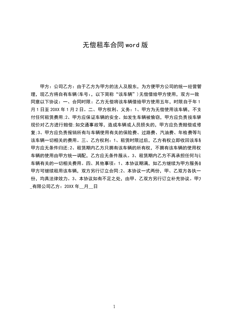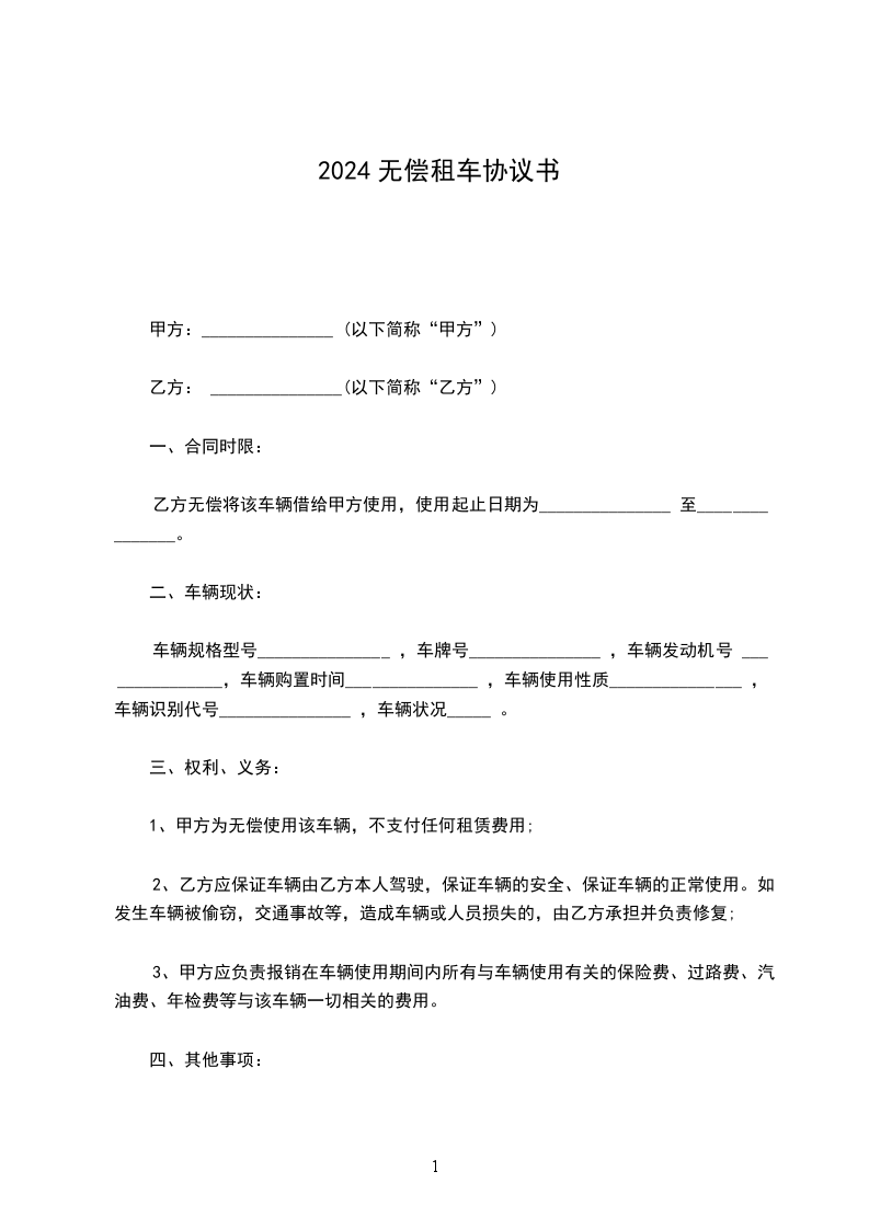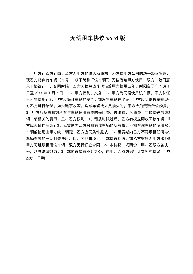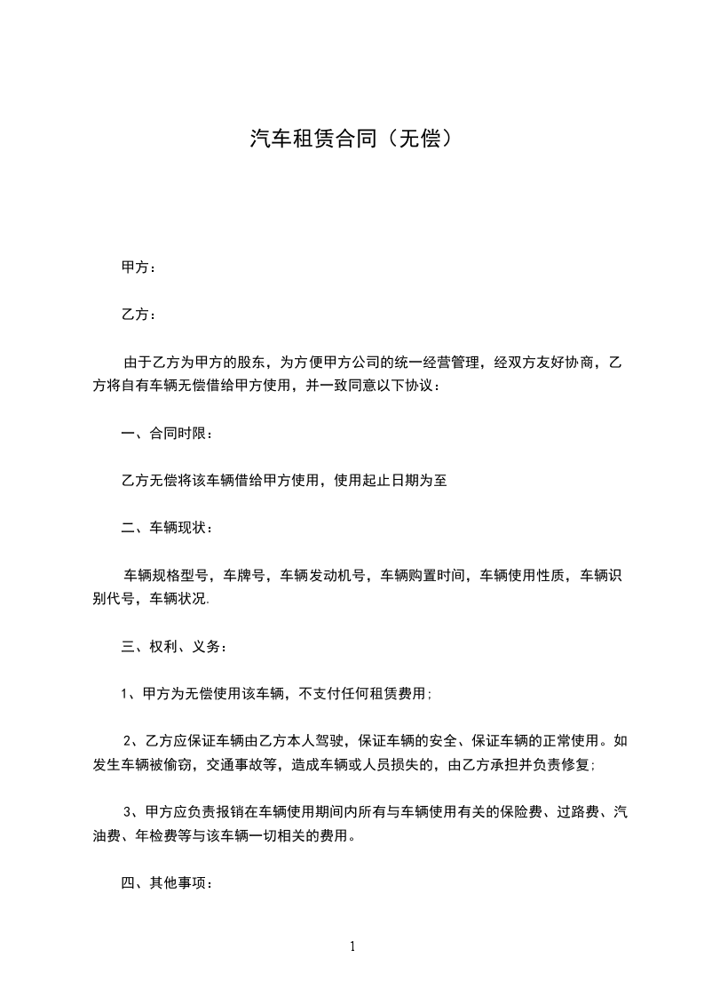 1、甲方为无偿使用该车辆,不支付任何租赁费用;
