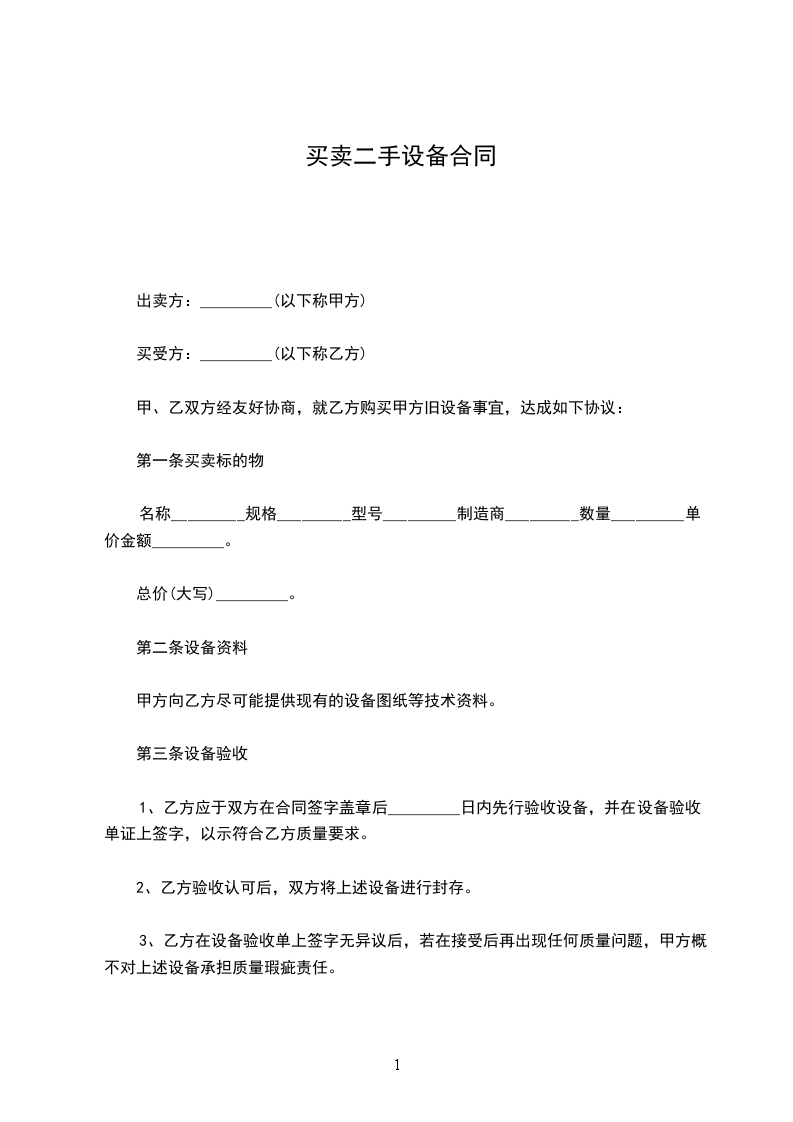 甲、乙双方经友好协商,就乙方购买甲方旧设备事宜,达成如下协议: