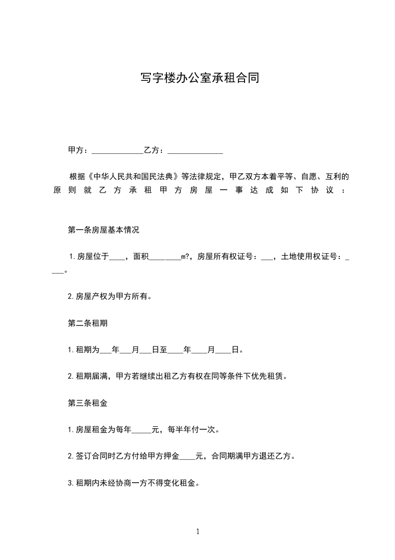 根据《中华人民共和国民法典》等法律规定,甲乙双方本着平等、自愿、互利的原则就乙方承租甲方房屋一事达成如下协议: