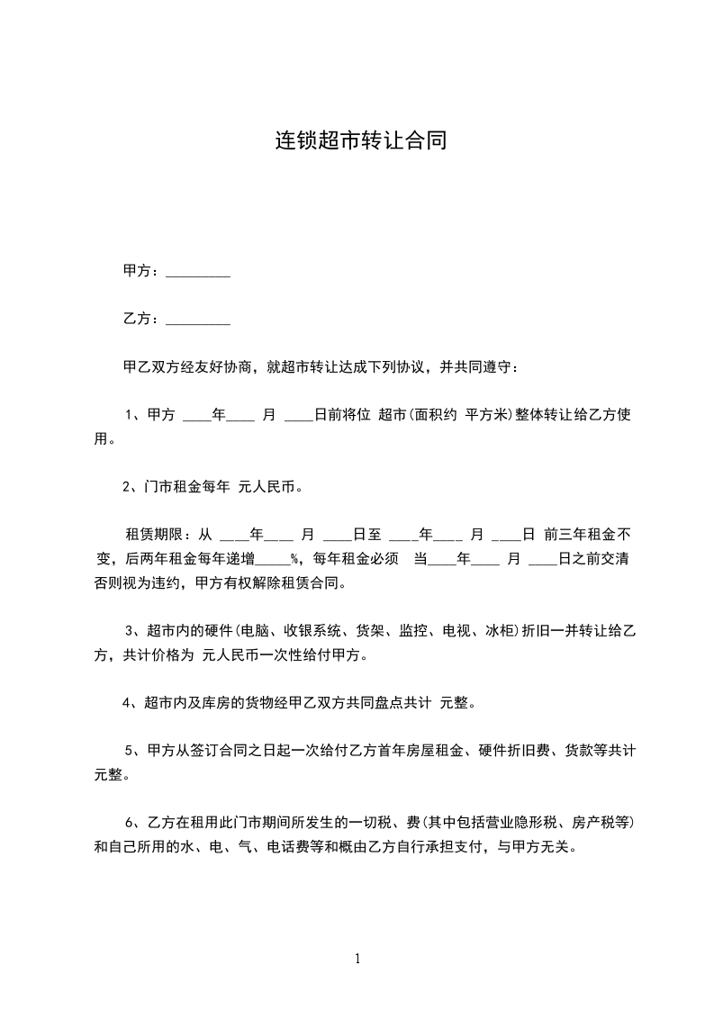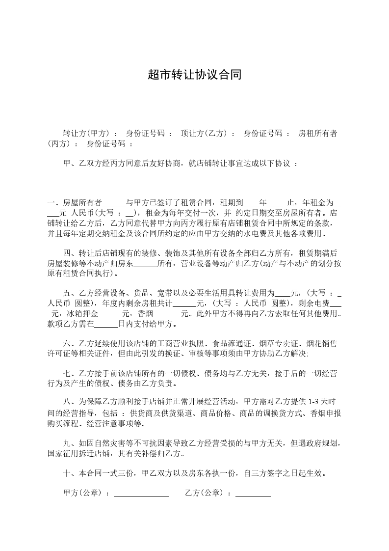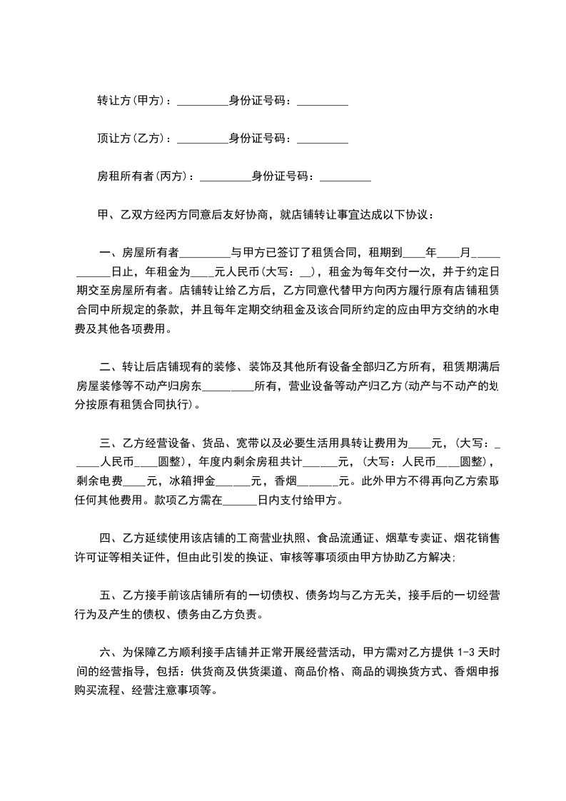 甲乙双方经友好协商,就店铺转让达成下列协议,并共同遵守:
