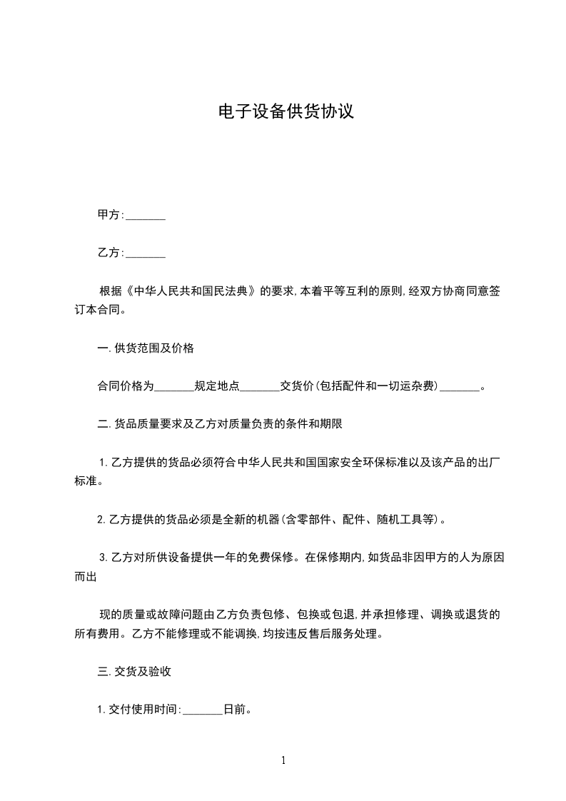3.乙方对所供设备提供一年的免费保修。在保修期内,如货品非因甲方的人为原因而出