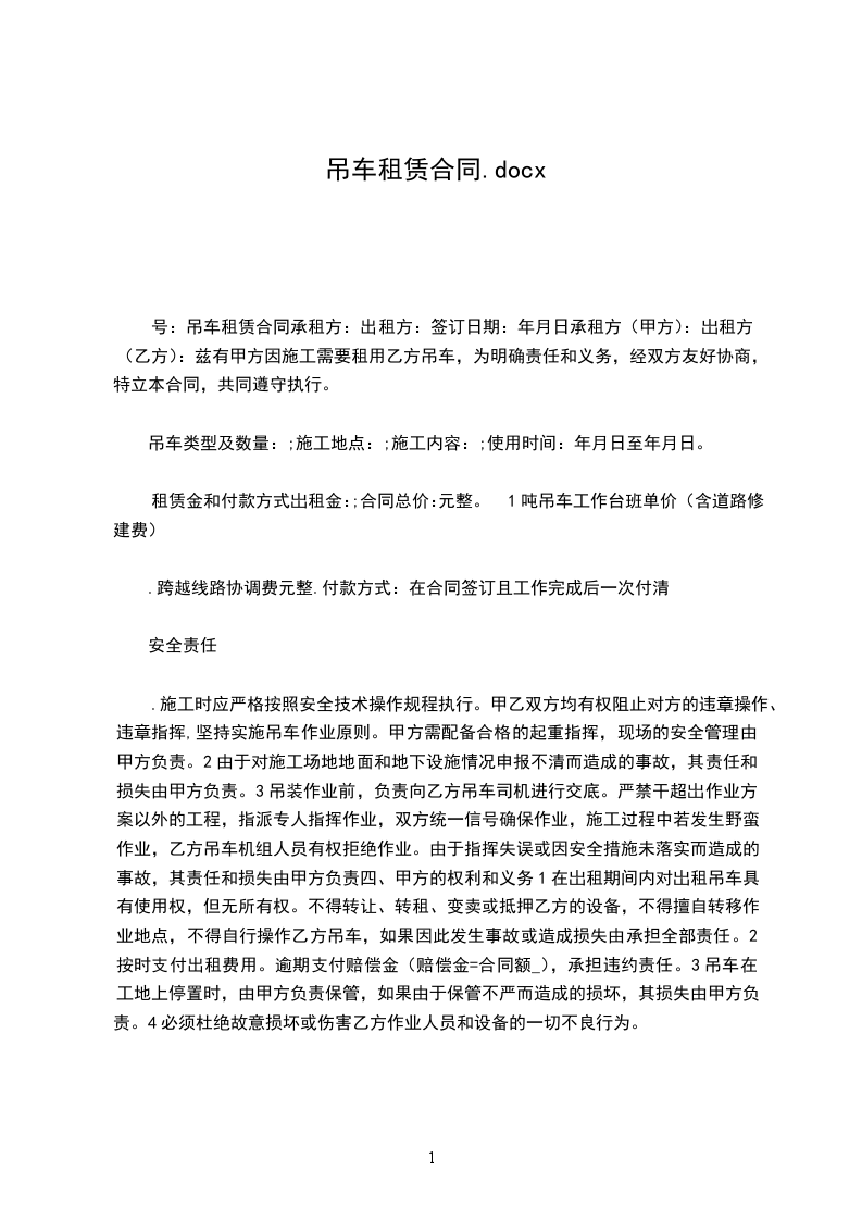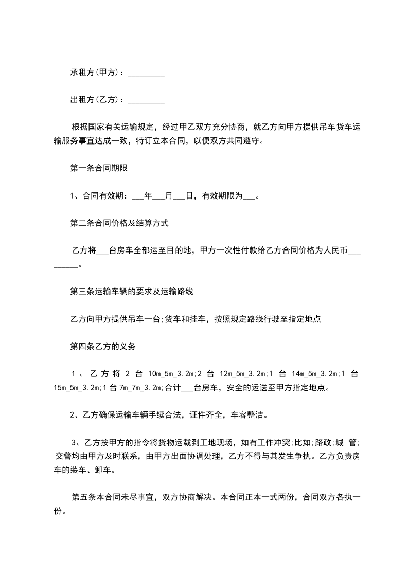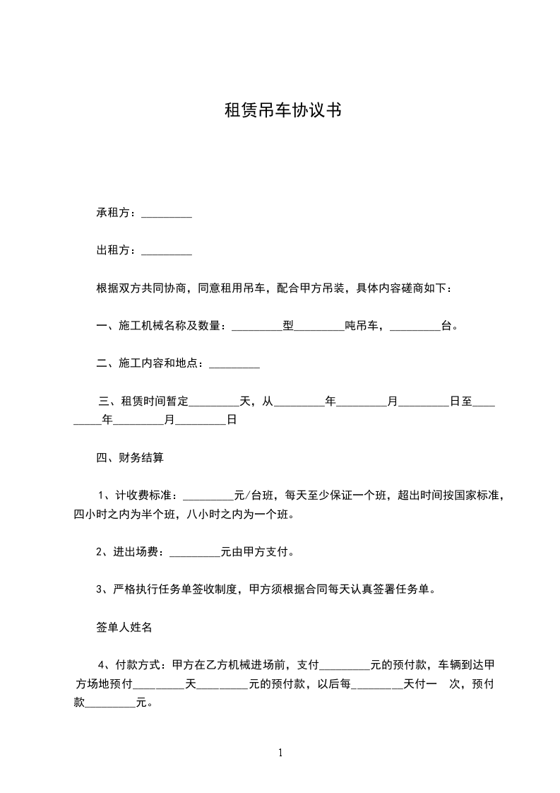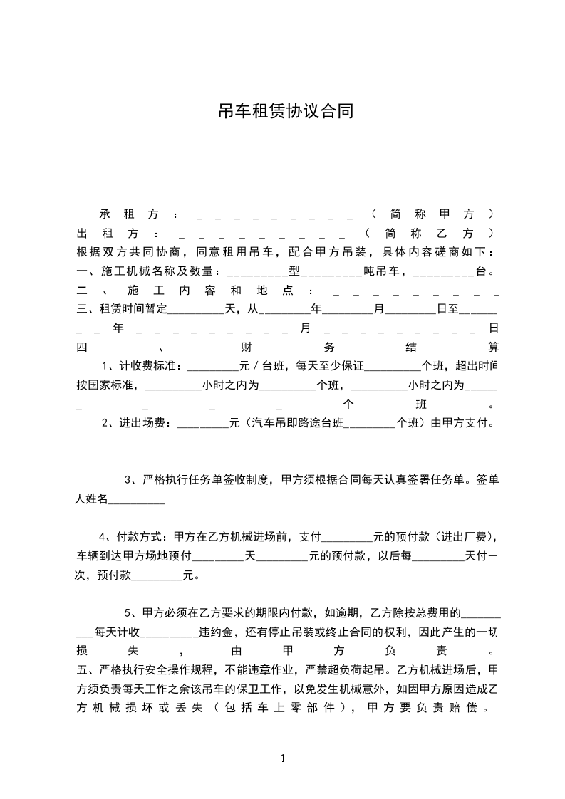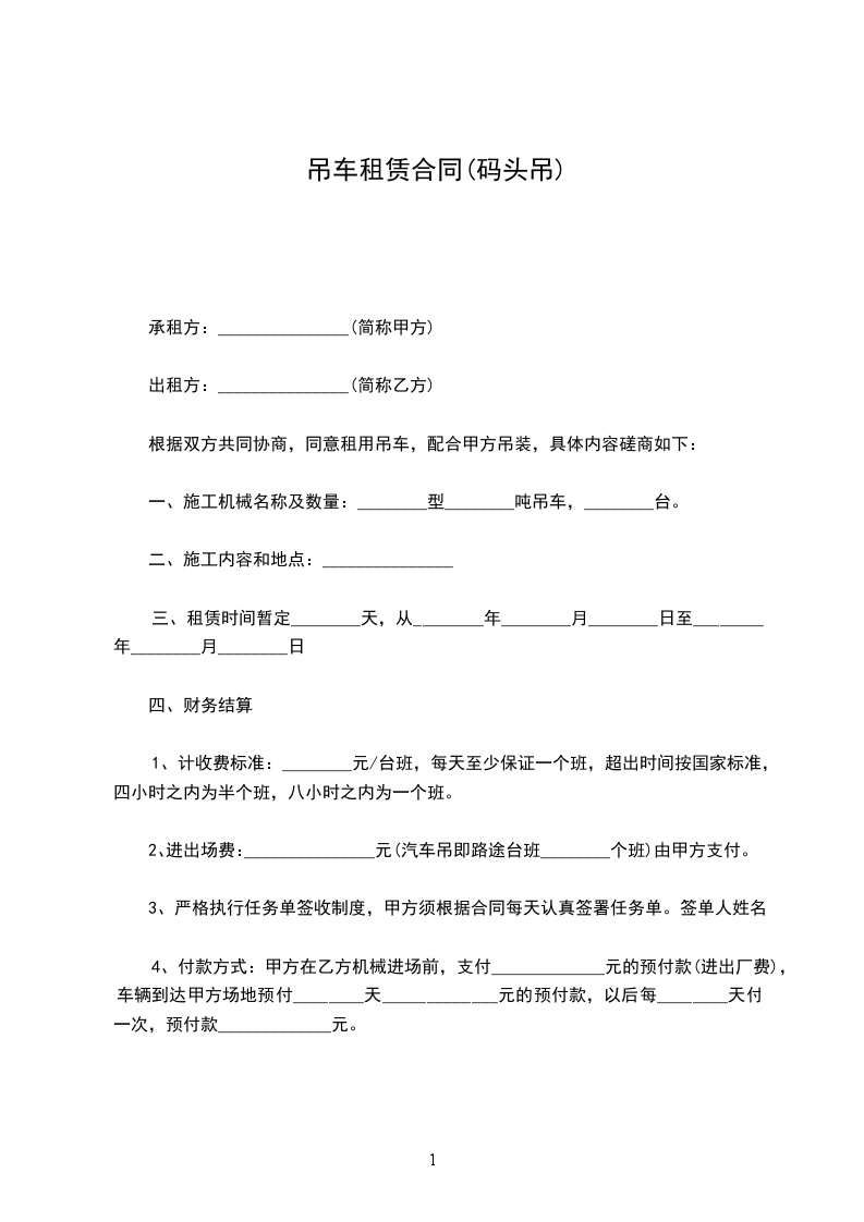 2、进出场费:_________元(汽车吊即路途台班_________个班)由甲方支付。