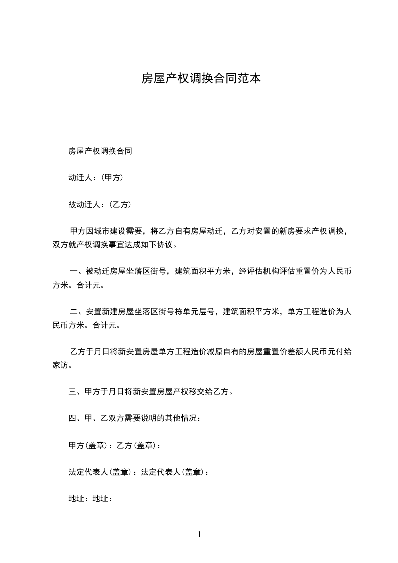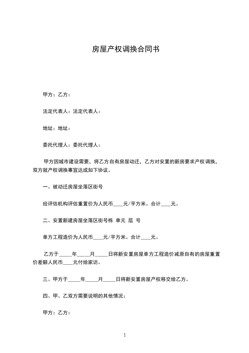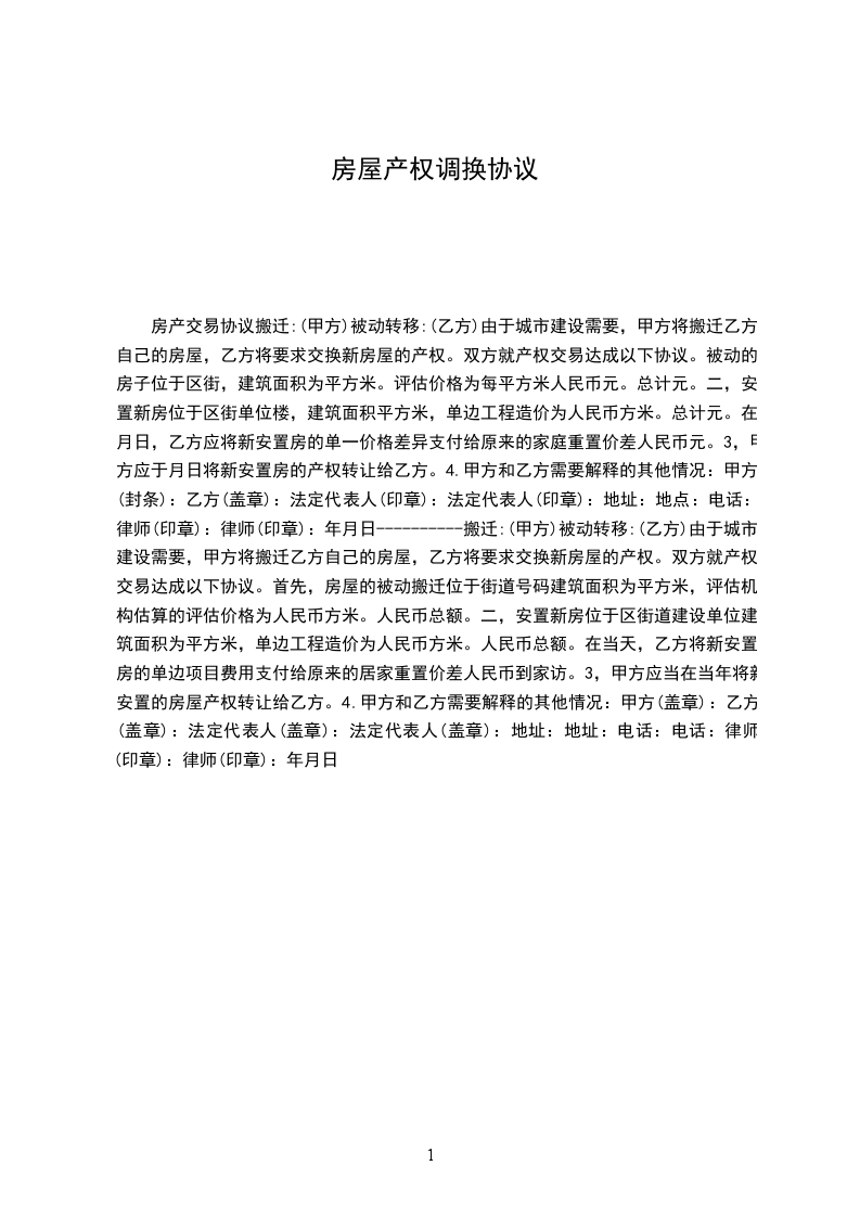 甲方因城市建设需要,将乙方自有房屋动迁,乙方对安置的新房要求产权调换,双方就产权调换事宜达成如下协议。