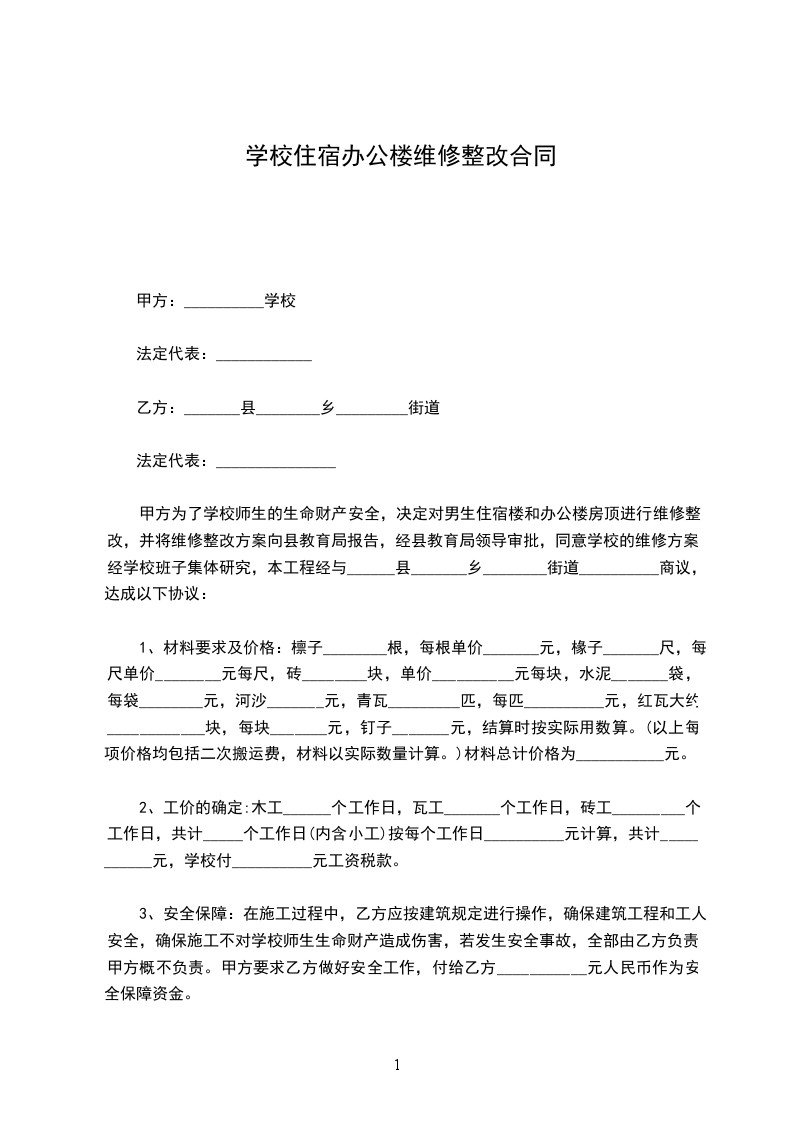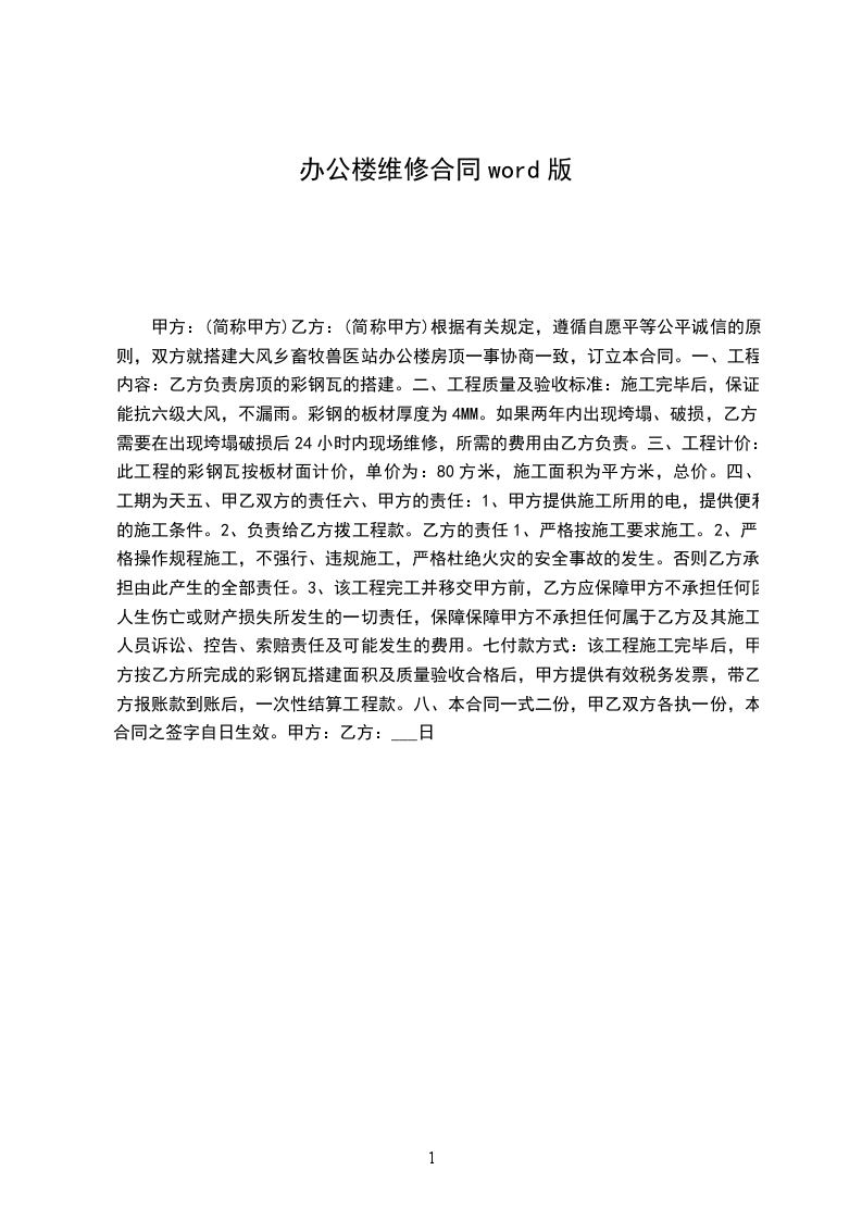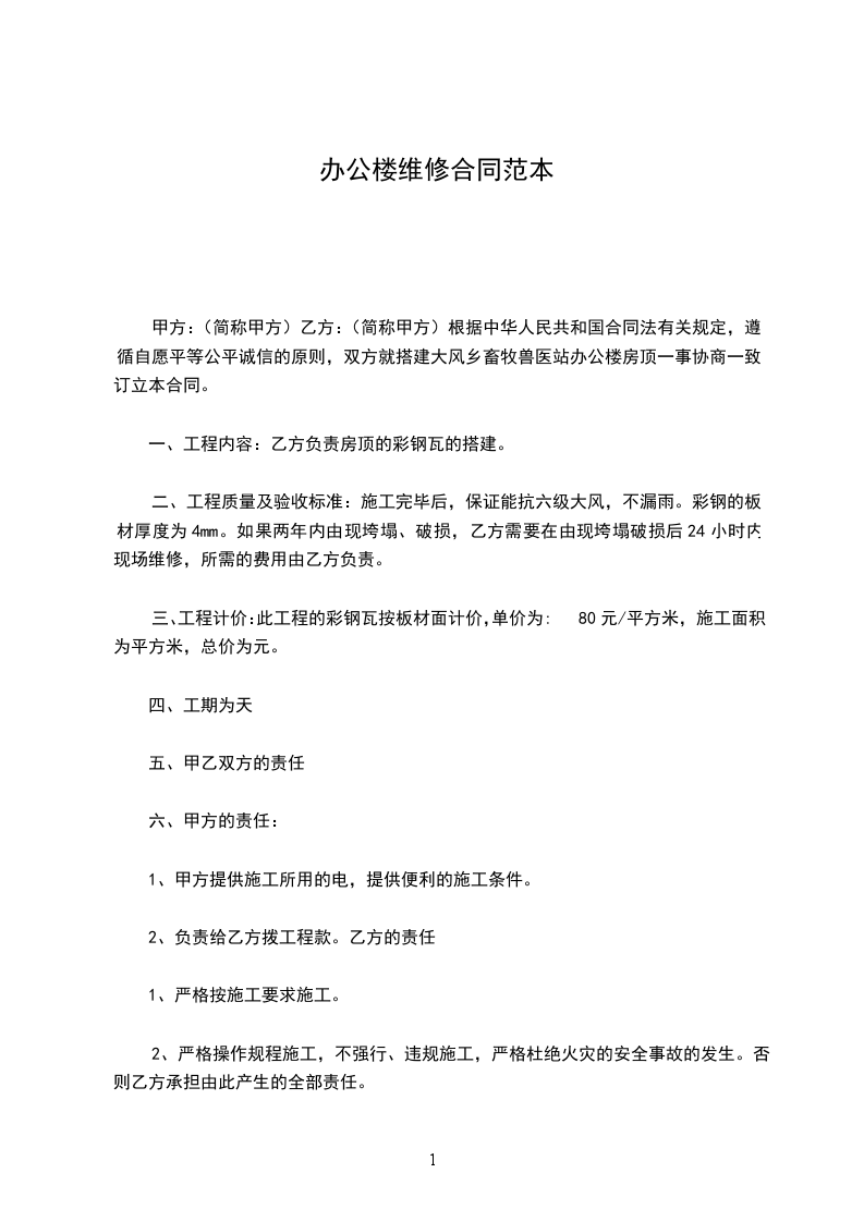 4.维修现场,日常用水、用电等必须注意安全,工地发生工伤由乙方负责。