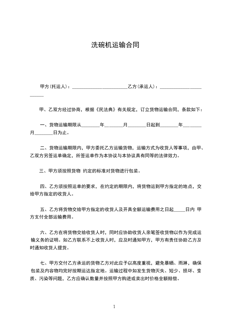 甲、乙双方经过协商,根据《民法典》有关规定,订立货物运输合同,条款如下: