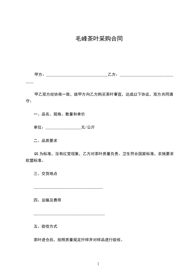 甲乙双方经协商一致,就甲方向乙方购买茶叶事宜,达成以下协议,双方共同遵守: