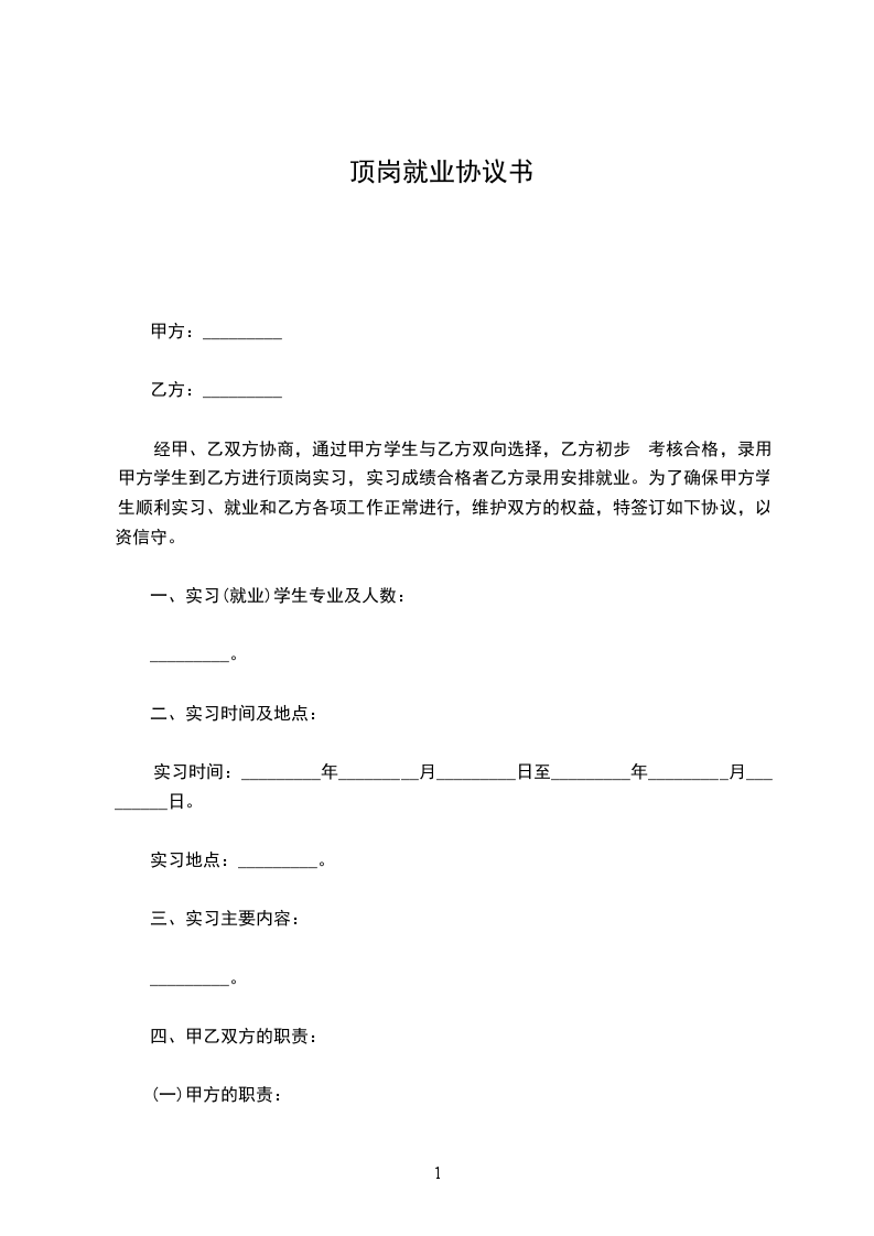 七、本协议一式三份,甲方就业、实习主管部门各一份,乙方一份。
