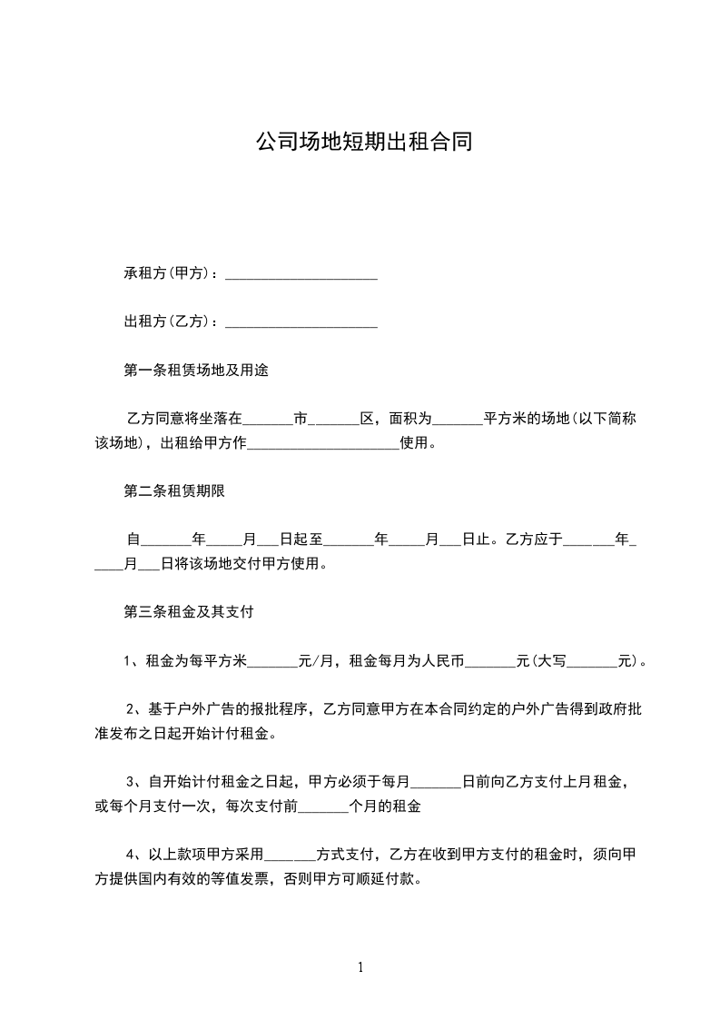 自_______年_____月___日起至_______年_____月___日止。乙方应于_______年_____月___日将该场地交付甲方使用。