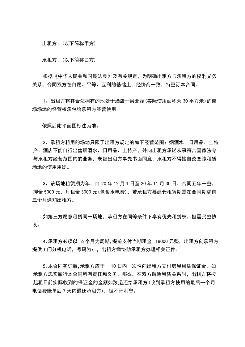 第一条 出租场地
