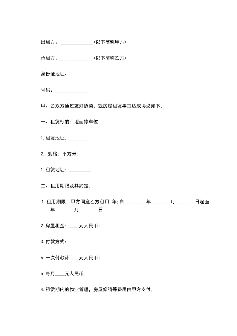 1.业主是已承租的形式买断相应地下停车位在该期限内的使用权,期限为_____年。