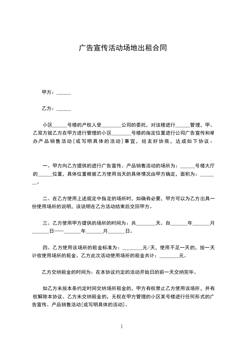 7、做好市场的整体 宣传,并保证全年广告宣传费用不低于市场全年租金总额的______%。______________________________________________________________________。