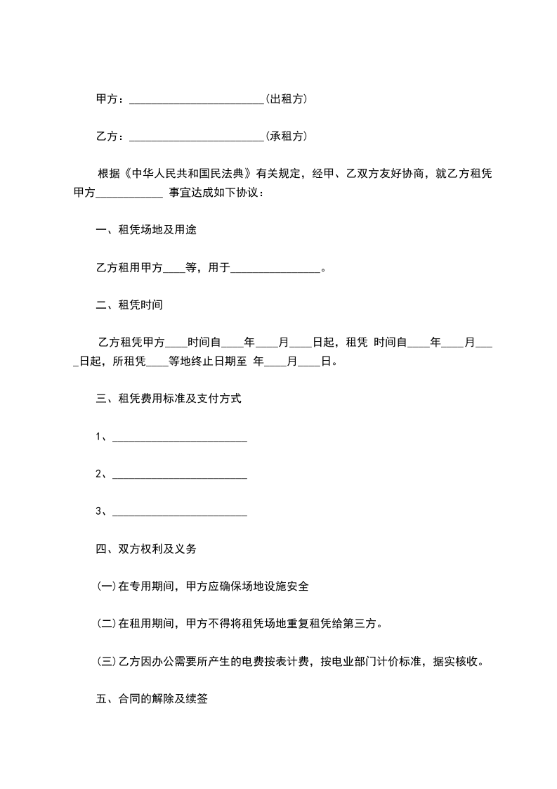 根据《中华人民共和国民法典》有关规定,经甲、乙双方友好协商,就乙方租凭甲方____________ 事宜达成如下协议: